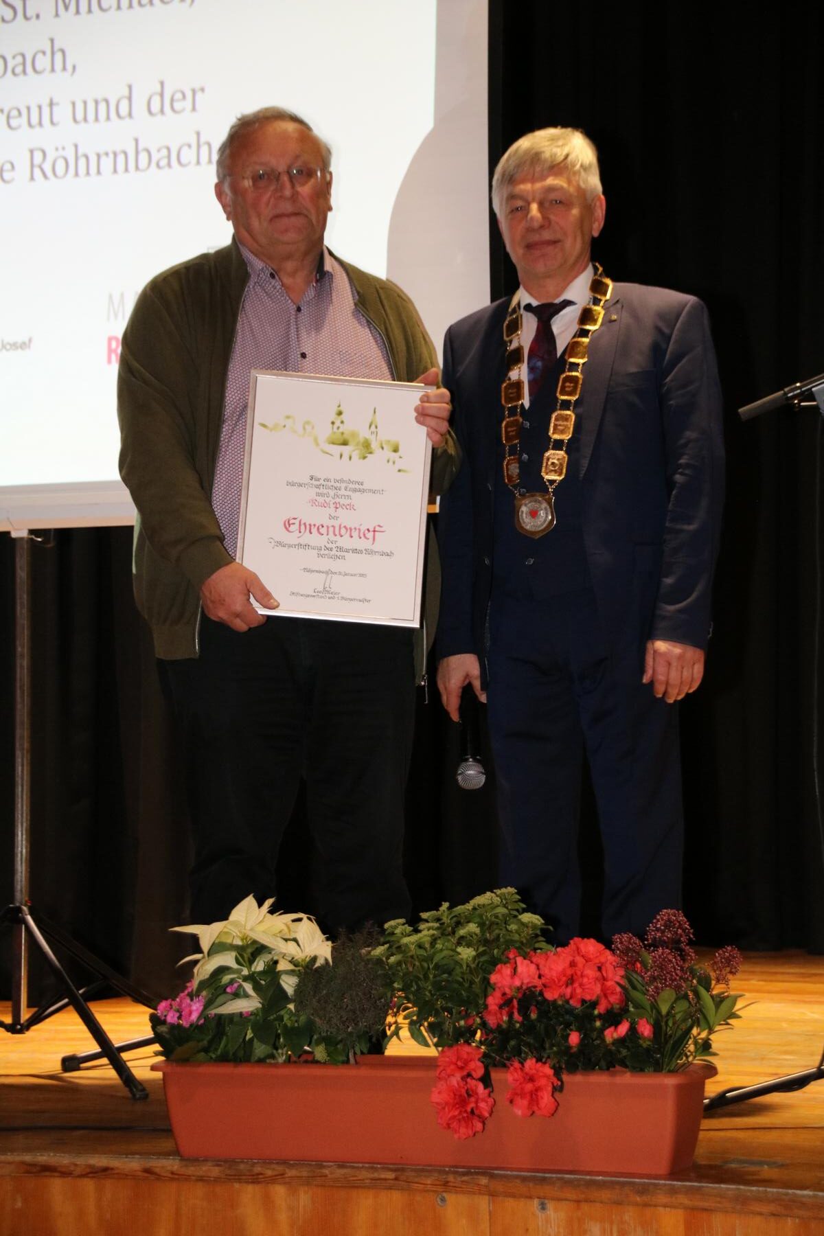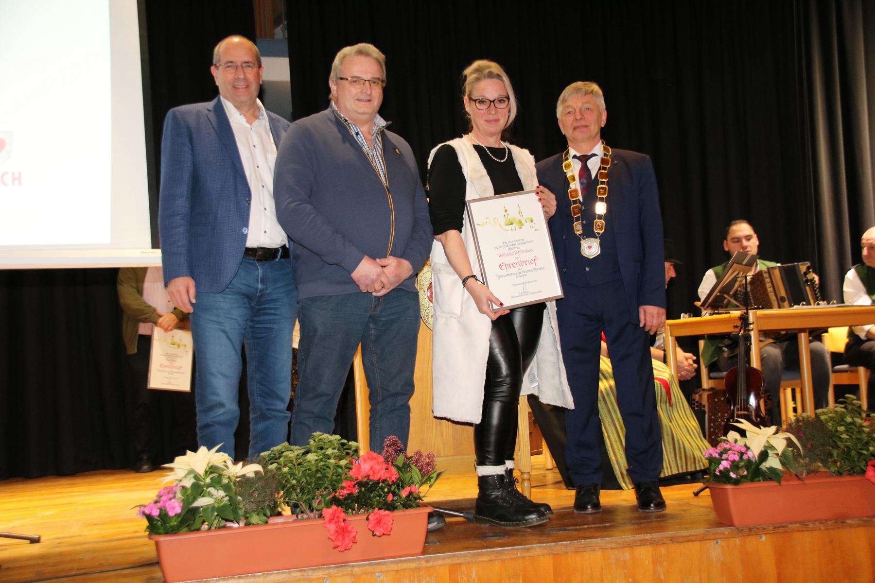 Ein Höhepunkt des Abends war die Verleihung des Ehrenbriefs der Bürgerstiftung Röhrnbach. Sechs Bürgerinnen und Bürger wurden für ihr außergewöhnliches Engagement geehrt und erhielten zusätzlich ein Kunstwerk von Rudi Ranzinger: