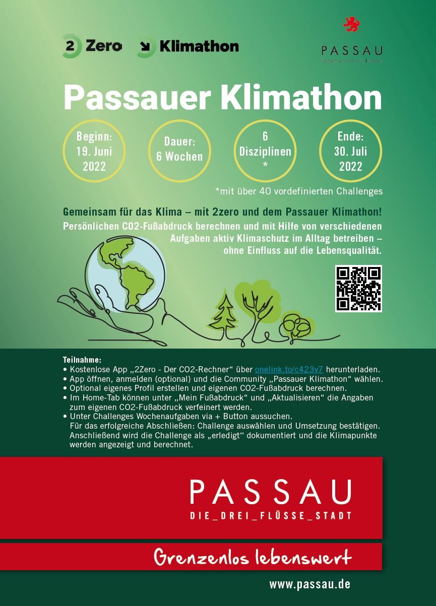 Weitere Informationen zum Klimathon, u. a. zur Teilnahme als Team oder ohne Smartphone, gibt es unter www.passau.de oder unter https://www.2zero.earth/klimathon.