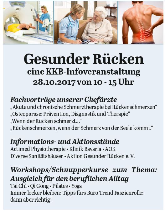 Am Samstag, den 28.10.2017 findet im Krankenhaus Freyung von 10 bis 15 Uhr eine informative Veranstaltung rund um das Thema „Gesunder Rücken“ statt.