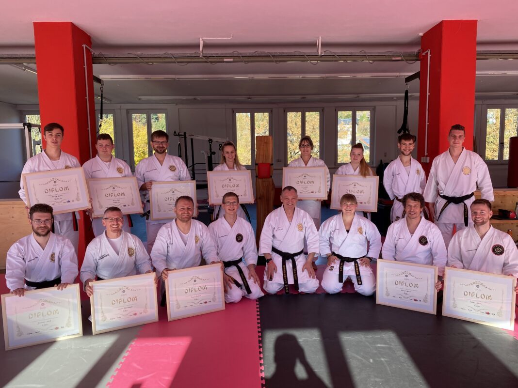 Eine Besonderheit war die Arbeit des Schreinermeisters Thomas Hierbeck, der ein japanisches Trainingsgerät aus Holz, das sogenannte Makiwara, für den Club anfertigte. Alle Prüfungskandidaten zeigten sehr gute Prüfungsleistungen und durften sich am Ende ihre Dan-Urkunde aus den Händen der Prüfer abholen.