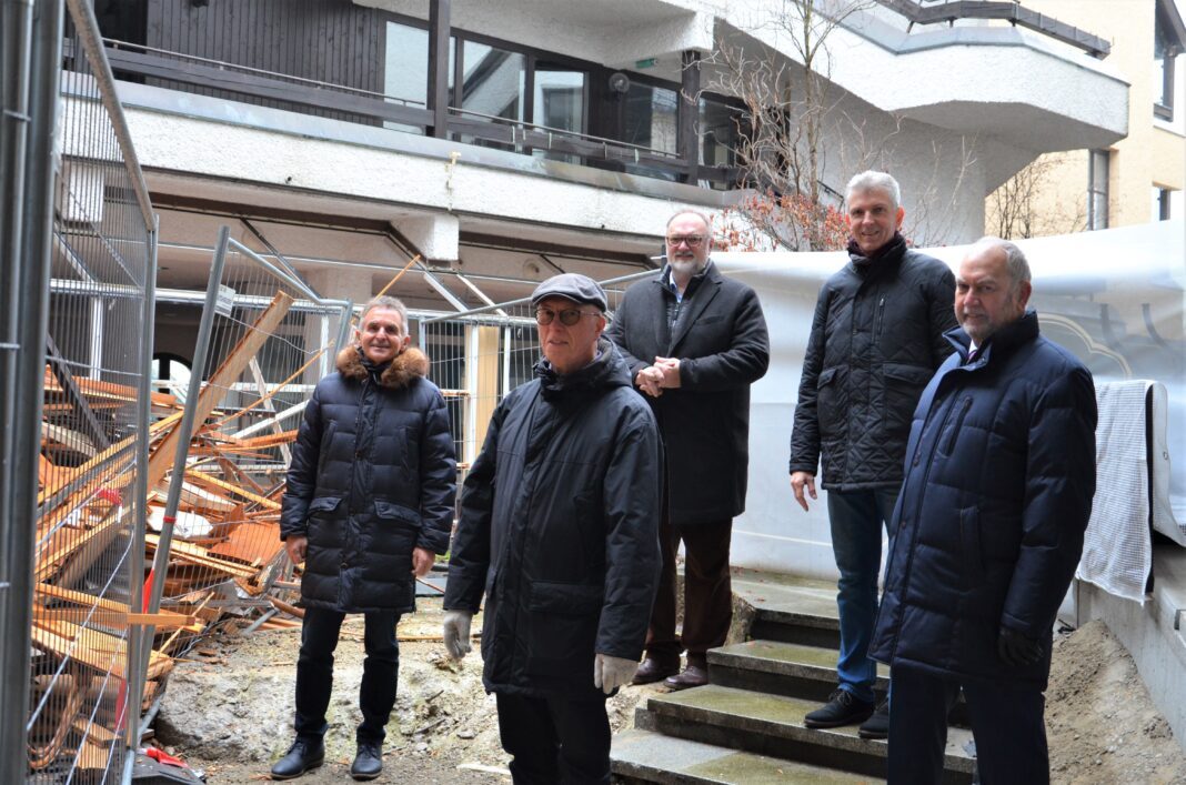 Landtagsabgeordnete Taubeneder und Waschler begutachten Baustelle am Rindermarkt – ehemaliges Altenheim wird umfunktioniert