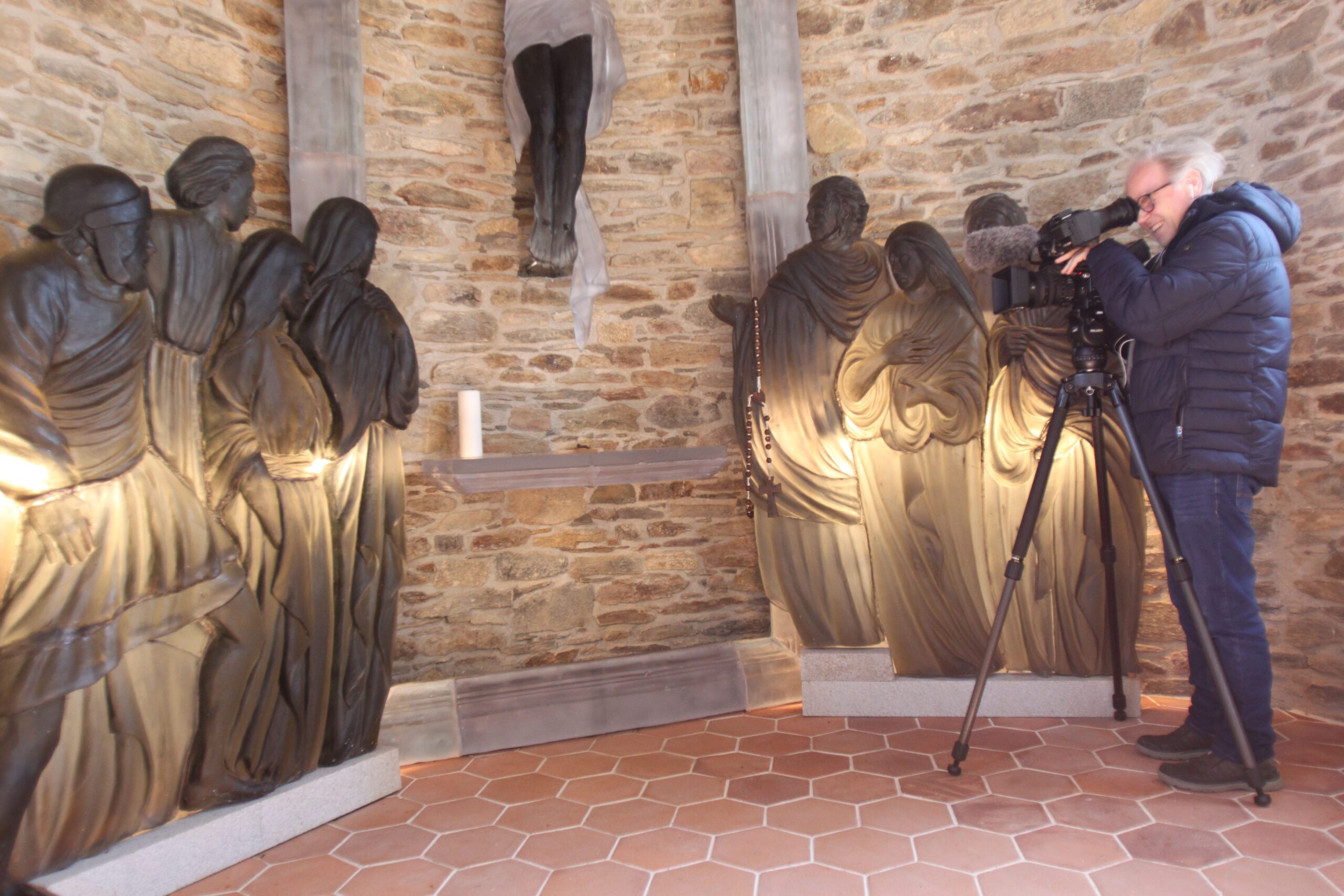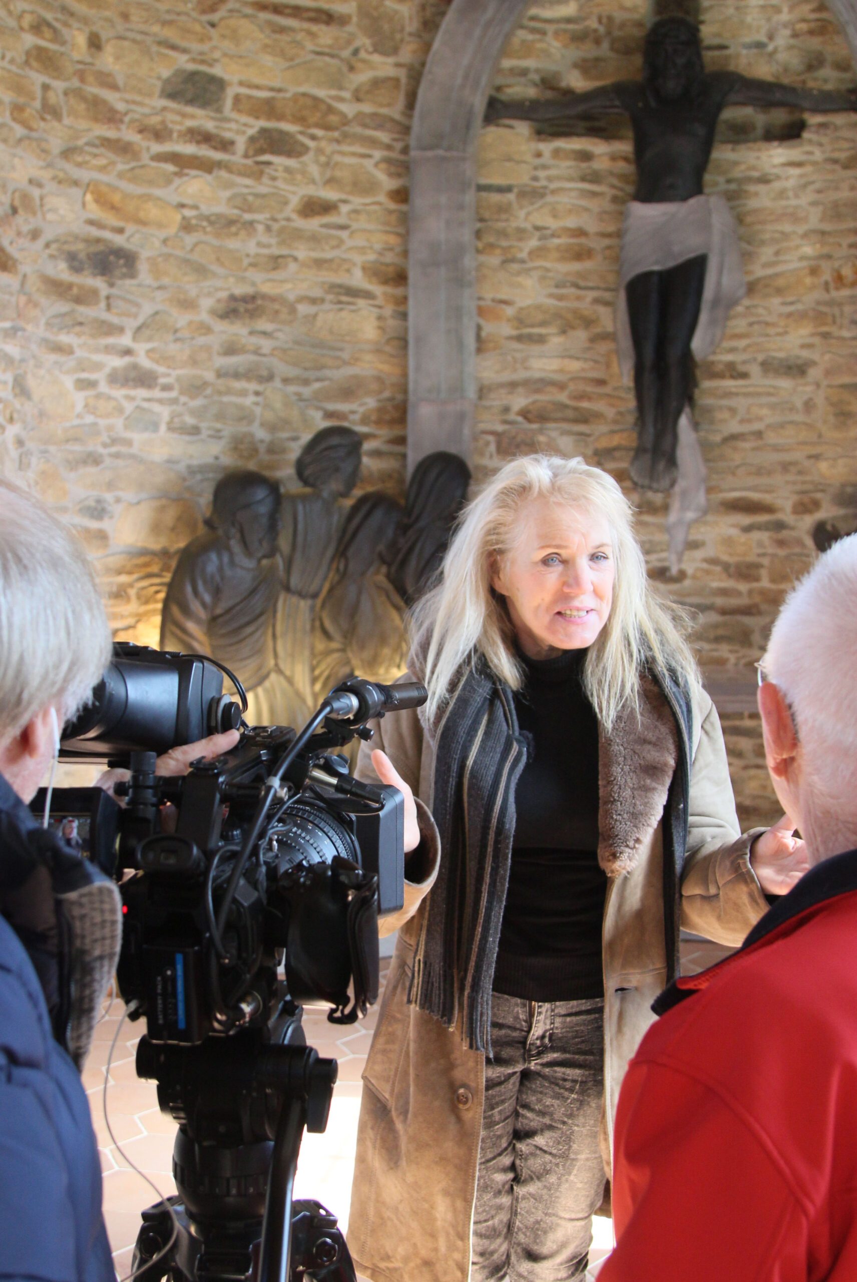 Wenn man über Glas erzählt, dann darf die Kunst nicht fehlen. Gerade im bayerisch-böhmischen Raum gibt es Kunsthandwerker, die aus diesem filigranen, manchmal empfindlichen Material herrliche Kunstwerke erstellen. Im Rahmen der Dreharbeiten besuchten die Filmleute unter anderem die bildende Künstlerin Vladimira Tesařova̛. Sie wurde bekannt durch den einzigartigen Glasaltar in der St. Gunther Kirche, Dobrá Voda, Gutwasser. Ganz in der Nähe zeigte sie dem Team zwei weitere, beeindruckende Werke. Für die Kapelle der „Schmerzensreichen Muttergottes“ in Vatětice, Watetitz, schuf sie einen kleinen Glasaltar. Die Kapelle wurde privat von dem Prager IT-Spezialisten Jakub Vinčalek auf den Grundfesten der wohl in den 1970er Jahren geschleiften, ursprünglichen Kapelle errichtet. Zu Recht stolz ist Vladimira Tesařova̛ auf die weltweit größte Glasskulptur des Heiligen Jan von Nepomuk auf der Brücke über die Otava, Wottawa, in Čepice bei Sušice. Die 1,75 Meter hohe Figur ist doppelseitig, so dass Passanten und Paddler sie sehen können.