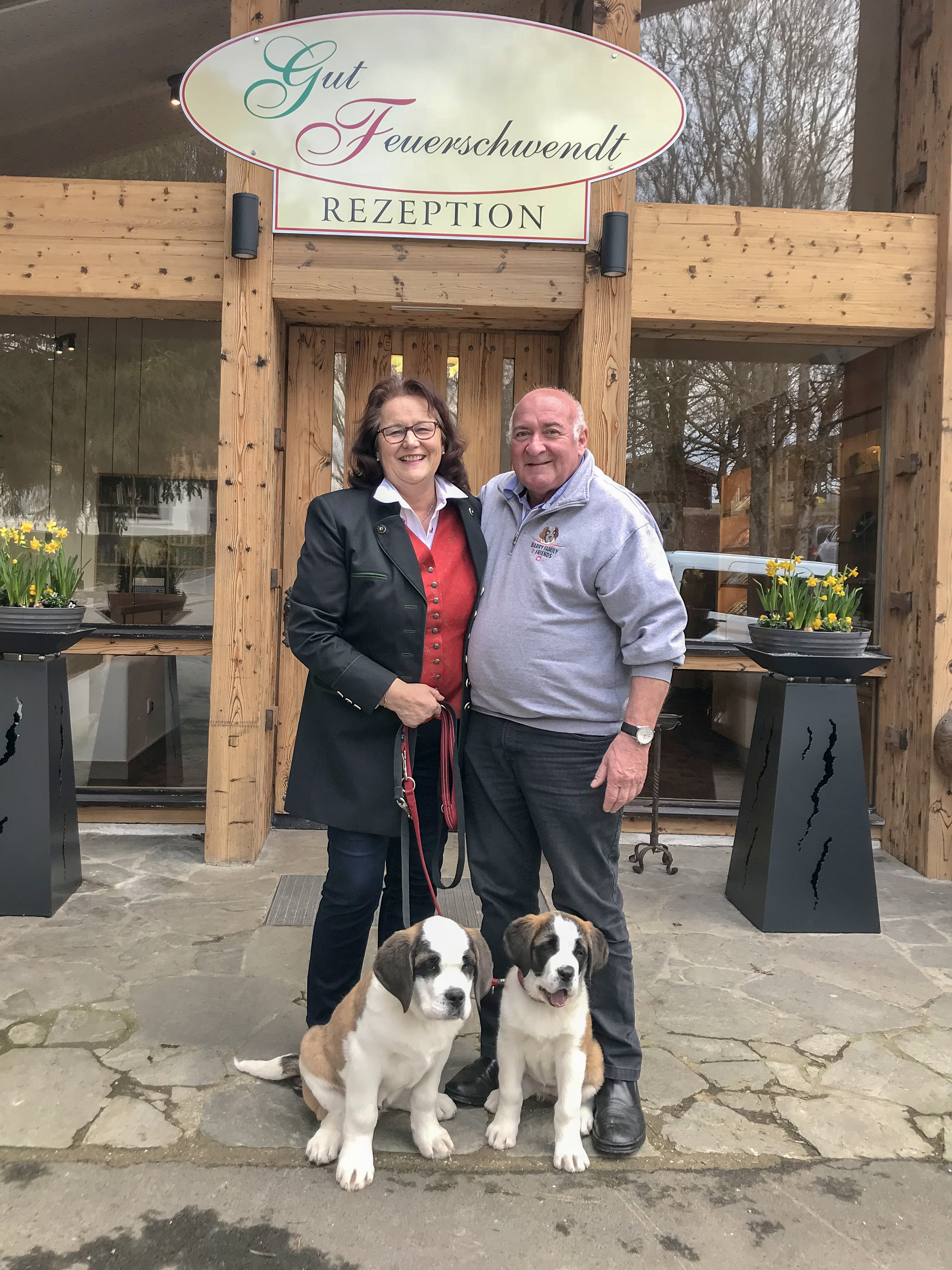 Nun ist man also unterwegs, um den großen, schweren Rigi-Bernhardiner, eine besondere Zuchtform dieser Hunderasse, auf zahlreiche unterschiedliche Aufgaben vorzubereiten. Dafür biete das Hunde-Trainingsgelände auf Gut Feuerschwendt perfekte Möglichkeiten, so Markus Kretz. „Wir haben lange nach einer geeigneten Unterkunft gesucht, wo wir mit den Hunden wohnen und trainieren können. Diese Suche sah lange Zeit aus, als wäre sie aussichtslos. Doch dann wurde man durch Zufall auf Gut Feuerschwendt aufmerksam. Dort finden sich Trainingsmöglichkeiten auf weiten Flächen und beste Wandermöglichkeiten, um dem Bewegungsdrang der Hunde gerecht zu werden. Eingesetzt werden die Rigi-Bernhardiner heute beispielsweise als Therapiehunde. So werden auch gerne in der Öffentlichkeit präsentiert, um zu zeigen, dass große Hunde nicht gefährlich sein müssen. Mit ihrer Gutmütigkeit und stoischen Ruhe nehmen die großen Vierbeiner Menschen die Angst. „Ein Glück, dass wir in Gut Feuerschwendt eine so tolle Unterkunft gefunden haben. Das ist wirklich ein Paradies hier“, zeigt sich Markus Kretz einmal mehr begeistert von der hundefreundlichen Unterbringung und den verständnisvollen Gastgebern Ulli Ermer und Karl Degenhart. Weitere Infos zum Verein gibt es unter www.barry-familyfriends.ch