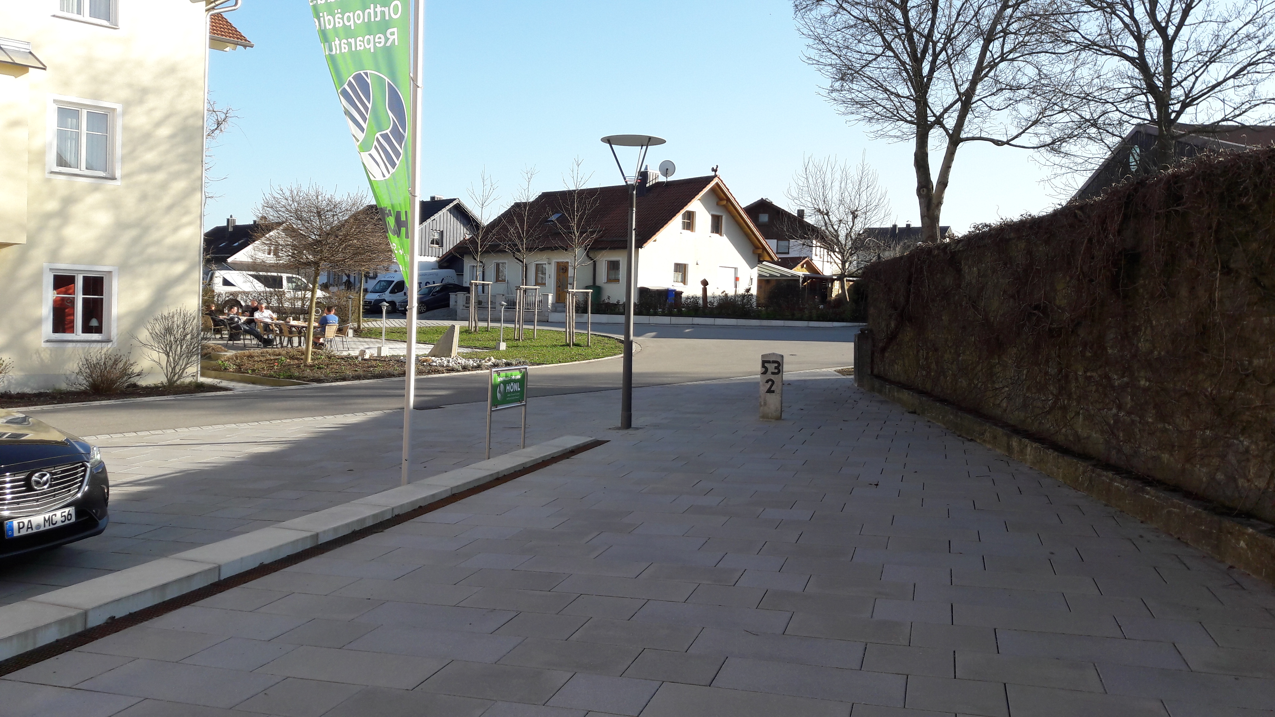 (Bilder: Die Gestaltung der Ortskerne, wie hier am Beispiel Neukirchen vorm Wald mit dem bereits fertig gestellten Bereich hinter dem Friedhof Richtung Kirchenweg und dem aktuell anlaufenden 2. Bauabschnitt an der Passauer Straße, sind wichtige Investitionen in die Ortsentwicklung, zu der auch attraktive Ortszentren zählen – Fotos: ILE Passauer Oberland)