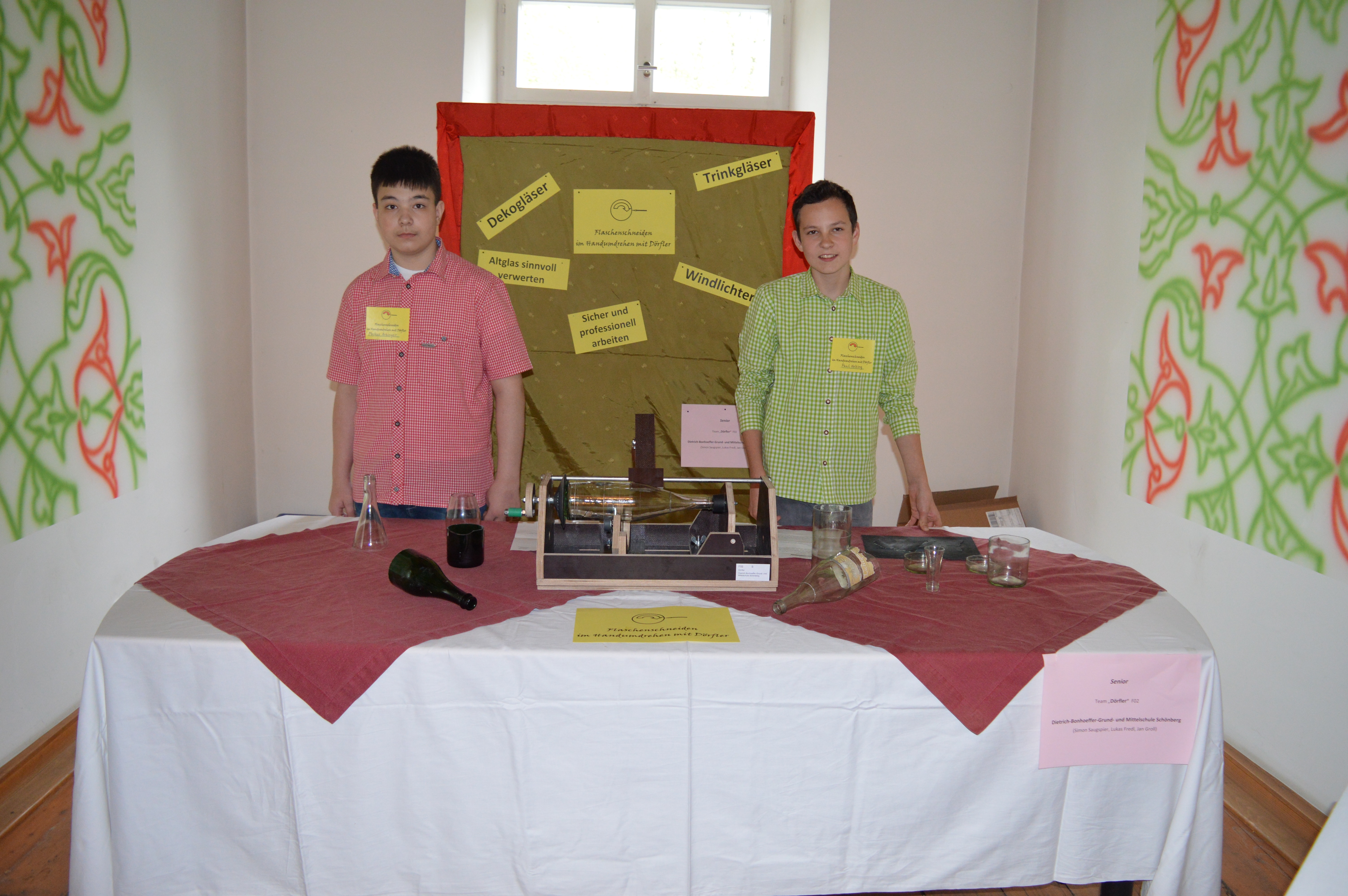 Das Team „Dörfler“ von der Dietrich-Bonhoeffer-Mittelschule in Schönberg mit Simon Saugspier, Lukas Friedl und Jan Groll hat sich dabei im Finale einen bemerkenswerten dritten Platz in der Seniorstaffel geholt und darf sich über 100 Euro Preisgeld freuen. Die Schönberger Schüler überzeugten die Jury mit einer Maschine, die Glasflaschen millimetergenau schneidet. Darüber hinaus hatten es Teams der Mittelschulen aus Jandelsbrunn, Röhrnbach und Waldkirchen ebenfalls ins Finale geschafft. Die Teams dieser Schulen konnten ein Preisgeld von je 50 Euro mit nach Hause nehmen.