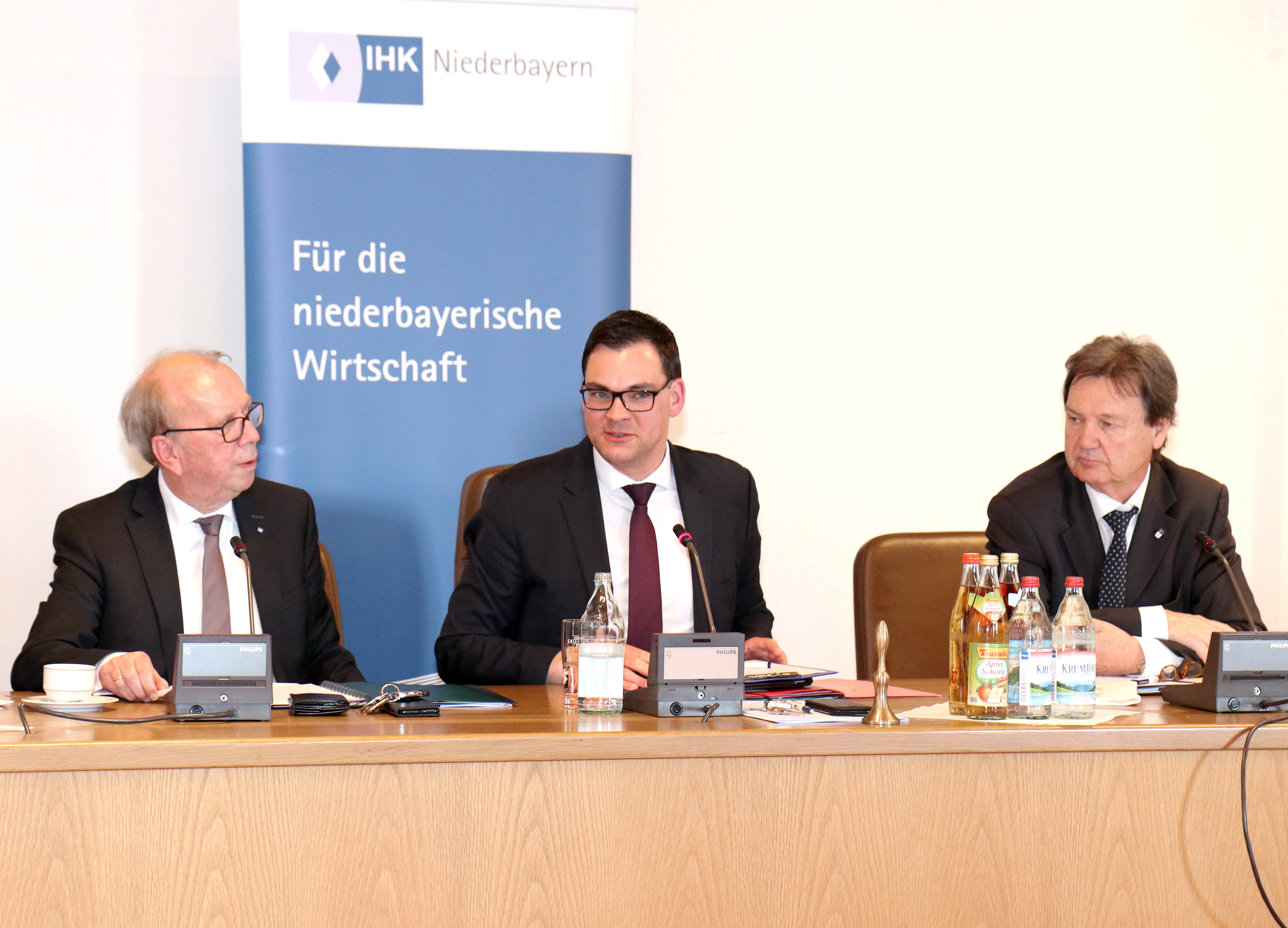(Bild, von links: IHK-Vizepräsident Alois Atzinger, Landrat Sebastian Gruber und IHK-Hauptgeschäftsführer Walter Keilbart im Gespräch – Foto: IHK Niederbayern)