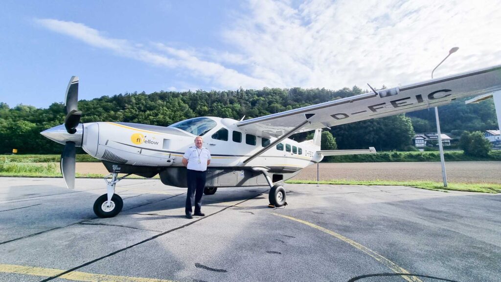 Geflogen wird mit einer Cessna Grand Caravan EX – einem echten Alleskönner, der genauso gut Fracht wie Passagiere transportieren kann. Für Sie bedeutet das: Platz ohne Ende. Mit der luxuriösen Oasis Business-Class Bestuhlung, die acht 360-Grad-drehbare Sessel bietet, fühlen Sie sich wie im Wohnzimmer – nur eben über den Wolken. Das Alpenpanorama ist ebenfalls inklusive. Hauptpilot und erfahrener Luftfahrt-Profi Oliver Mayer sorgt dafür, dass Sie sicher und entspannt ankommen. Nach 18 Jahren in der Großluftfahrt hat er sich entschieden, das Leben etwas entspannter anzugehen – und das spürt man auch als Passagier. Zudem muss man sich bezüglich des Flugs keine Sorgen machen: „Ob Cessna oder Boeing, es gelten überall die gleichen Sicherheitsstandards, die regelmäßig kontrolliert werden“, erklärt Oliver Mayer.