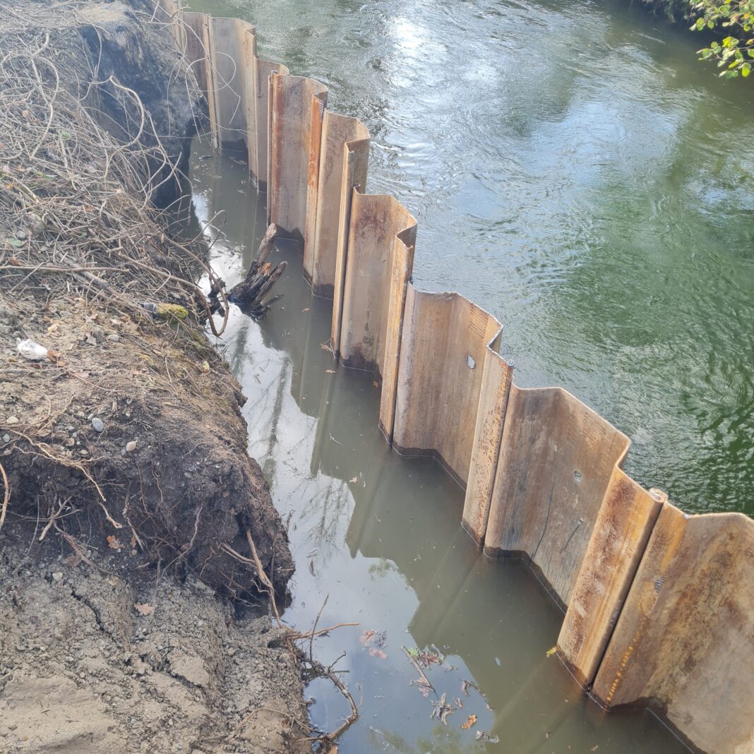 Wie von Landrat Bernd Sibler angekündigt, wurde in dieser Woche die Spundung zur Sicherung des Mühlbachs vorgenommen. Am Dienstag (11.10.) wurden ungefähr zwanzig Meter Spundwände in den Mühlbach eingebaut, um einen weiteren Eintritt von Heizöl in das Gewässer zu vermeiden.