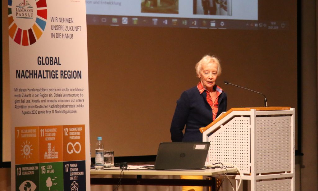 Anette Turmann zeigte sich bei ihrem Vortrag über die Rolle der Kommunen und die Arbeit der Servicestelle der Kommunen in der einen Welt beeindruckt und gleichzeitig dankbar, dass Landrat Franz Meyer das Thema Nachhaltigkeit „zur Chefsache erklärt hat“. Bei ihrer täglichen Arbeit können Kommunen beispielsweise in der Beschaffung auf Nachhaltigkeit achten. Auch durch die Unterstützung bei der Integration von Asylbewerbern und Flüchtlingen können Teilziele erreicht werden. Mit den Projekten „Integrationslotsen“ und „Bildungskoordination“ ist der Landkreis Passau hier bereits Vorbild. Die Servicestelle der Engagement Global gGmbH unterstützt die Gemeinden und Landkreise bei der Entwicklung entsprechender Strategien zur Umsetzung der Nachhaltigkeitsziele aus dem Konzept der UN. „Die Kommunen haben bei der Umsetzung der Agenda 2030 eine Schlüsselrolle“, so Turmann, denn nur von der Basis aus könnten die Ziele gemeinsam erfolgreich umgesetzt werden.