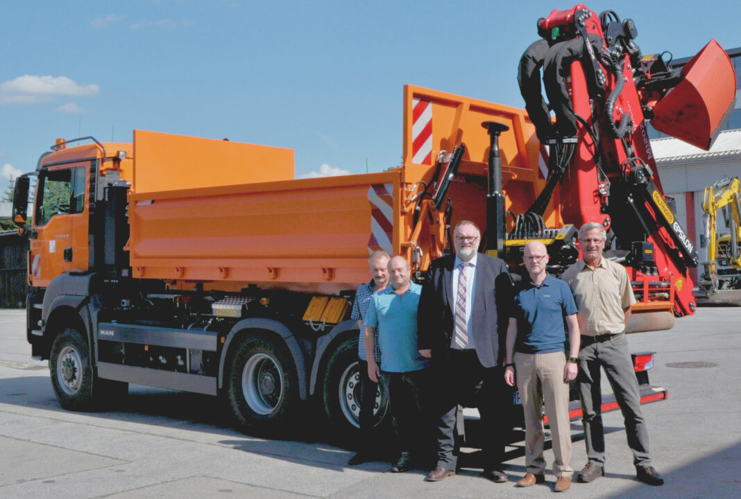 Der 440 PS starke Lastkraftwagen verfügt über eine Liftachse und einen Abrollkipper. Zusätzlich ist das Fahrzeug mit einem Palfinger Epsilon Heckkran mit 11.60 m Ausladung ausgestattet. Diese Neuanschaffung ersetzt einen in die Jahre gekommenen und zunehmend reparaturanfälligen LKW. Die Investition beläuft sich auf rund 320.000 Euro. Der Ausschuss für Bauen und Liegenschaften hat in seiner Sitzung vom 02.07.2015 die Neuanschaffung beschlossen.