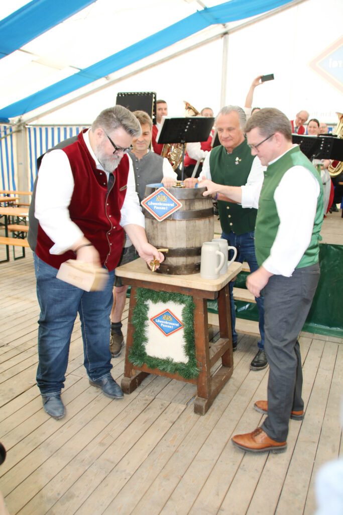 Passau. Heute Mittag zapfte Passaus 2. Bürgermeister Andreas Rother die erste Maß der Oiden Dult an. Zusammen mit Veranstalter Till Hofmann freute er sich auf schöne, zünftige Tage bei hoffentlich bestem Wetter. Musikalisch unterstützt wurde der Anstich von der Blaskapelle Domestadl. Also auf geht’s zur Oiden Dult von 05. – 11. Juni im Passauer Klostergarten.