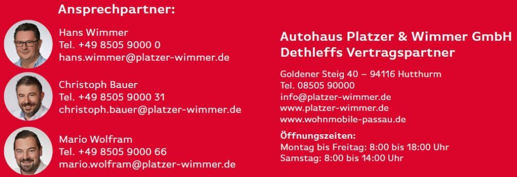Hutthurm. Neben Top-Angeboten und einer großen Auswahl sorgten auch interessante Fachgespräche sowie eine umfangreiche Beratung für Begeisterung. Bereits seit vielen Jahren steht Platzer & Wimmer für professionellen Service und Top-Qualität. Mit der Erweiterung des Sortiments um die attraktiven Dethleffs Reisemobile ist dem fortschrittlichen Autohaus aus Hutthurm ein weiterer Coup gelungen.