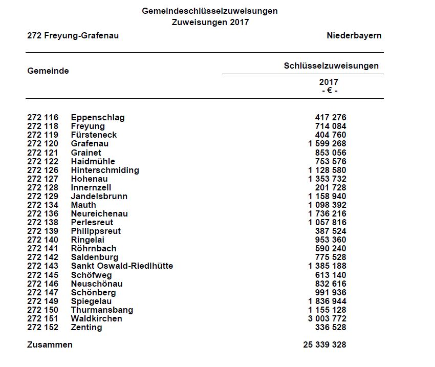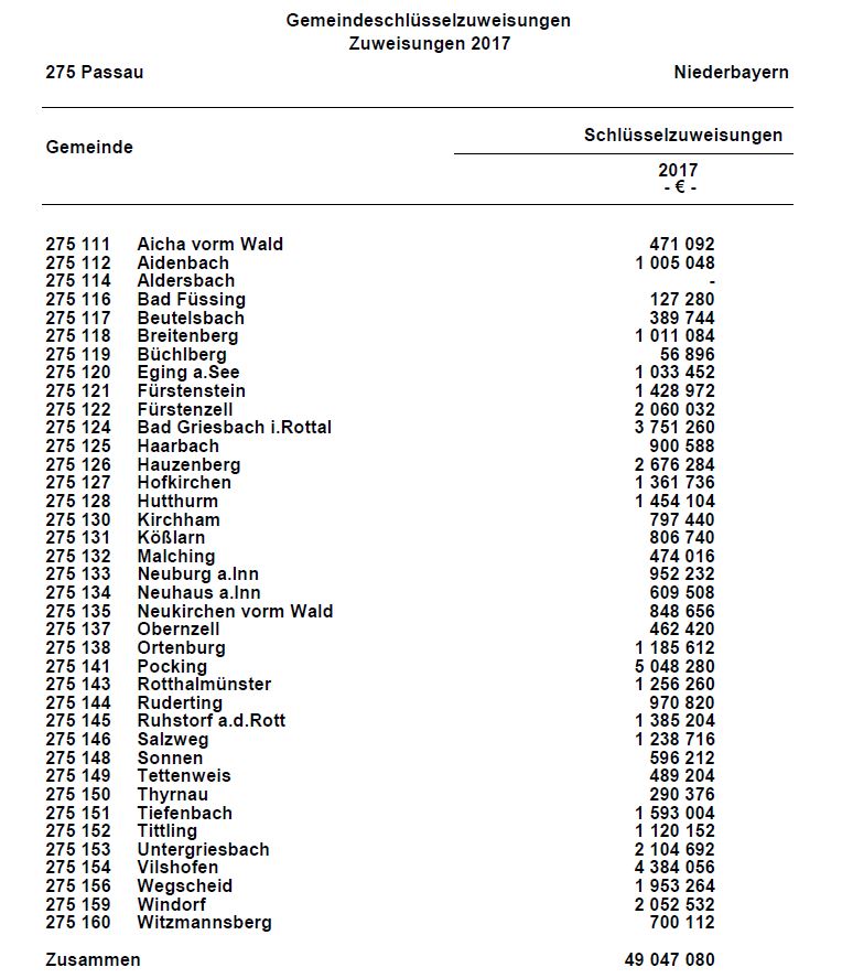 München/Passau. Seit heute Vormittag liegen den Landtagsabgeordneten Dr. Gerhard Waschler und Walter Taubeneder die genauen Schlüsselzuweisungen für das Jahr 2017 vor.