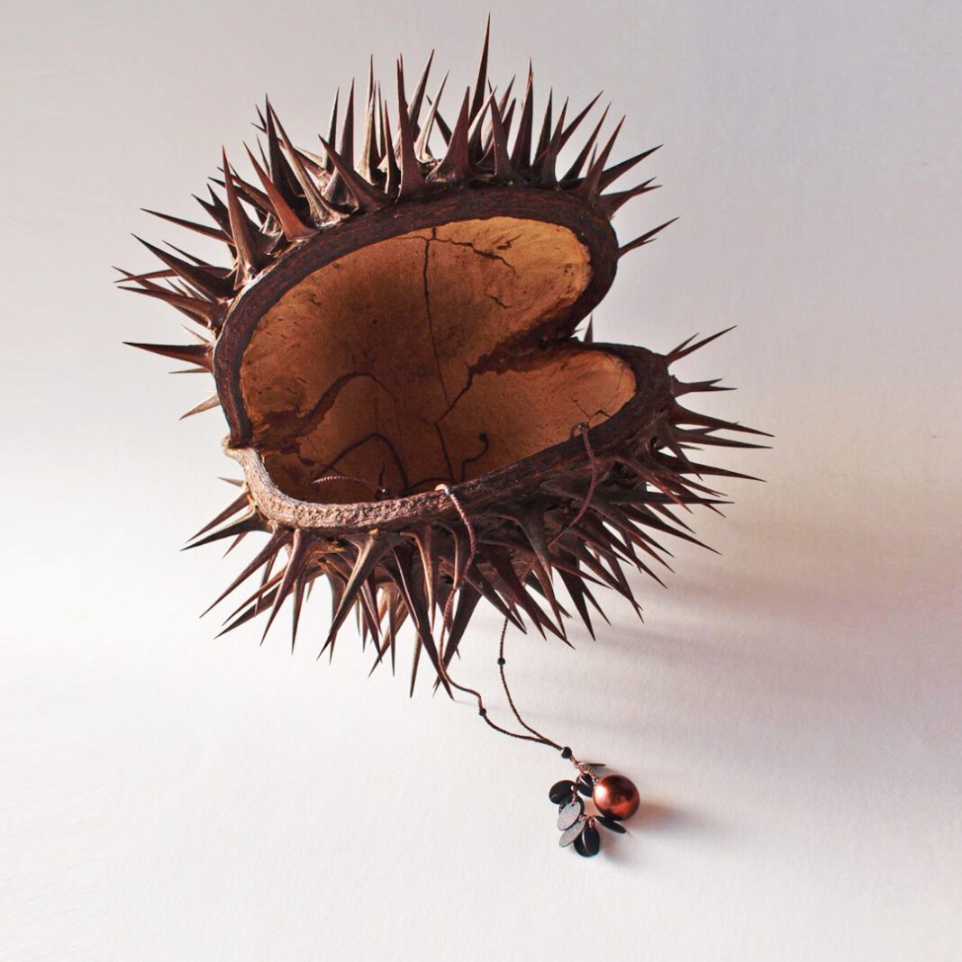 Deggendorf. Mit der Ausstellung „Schmuck + Hülle“, die am Sonntag, 3. April 2022 um 11.00 Uhr eröffnet wird, präsentiert das Handwerksmuseum die Werke von 30 Künstlerinnen der GEDOKmünchen, die im Rahmen eines Projekts die Wechselwirkung zwischen dem Objekt, dem Schmuck und dem umgebenden Raum, der Hülle, untersuchten. Die Teilnehmerinnen, die aus unterschiedlichen Sparten der angewandten Kunst kommen, fanden sich zu Paaren zusammen und entwickelten völlig neue Objekte, die die traditionelle Bedeutung der Begriffe von Schmuck als tragbarem, mobilem Objekt und der statischen Hülle aufheben. In allen Interpretationen vereinen sich Objekt und Umgebung zu einem symbiotischen Ganzen. Sie überspannen dabei den Bereich von Objektkunst über Buchbinderei, Glas und Licht, Gold- und Silberschmiedekunst, Holzbildhauerei, Keramik-, Leder-, Papier- bis Textil-Kunst.