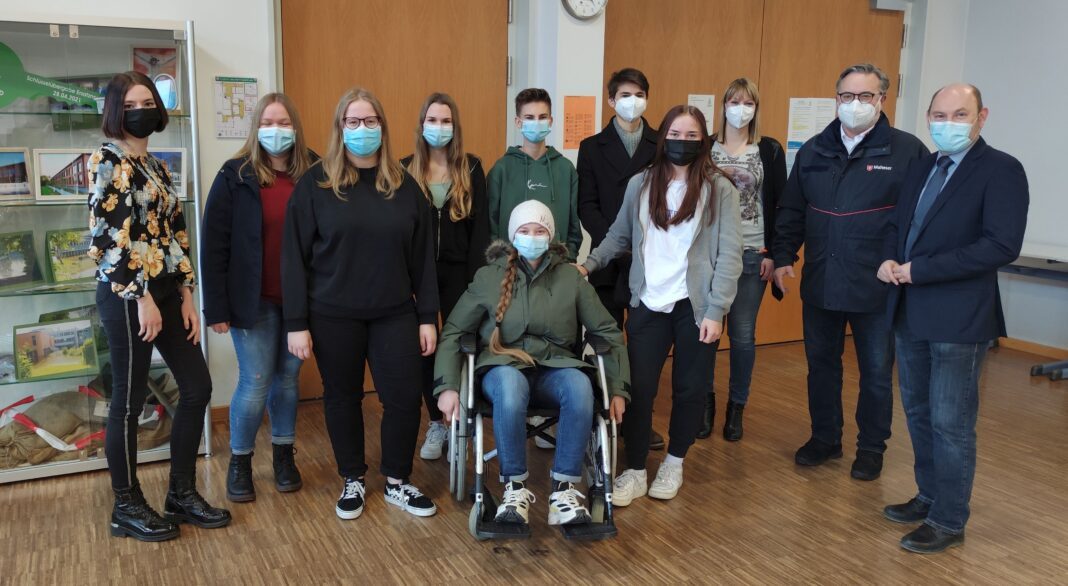 Ein Problem würde die Verantwortlichen schon länger beschäftigen, so Johann Lummer in seiner Nachricht an die Malteser: „Immer wieder sind einzelne Schülerinnen und Schüler aus unserer Schulfamilie aufgrund von Verletzungen gehandicapt und tun sich schwer, mit Gips oder Schiene am Bein die Wege zwischen den Schulgebäuden oder mittags zum Essen in die Mensa zurückzulegen. Da für diese Kurzzeit-Gehbehinderngen meist keine Gehhilfen zur Verfügung stehen, wünschen wir uns schon länger einen Rollstuhl einfacher Ausstattung für unsere Schule.“