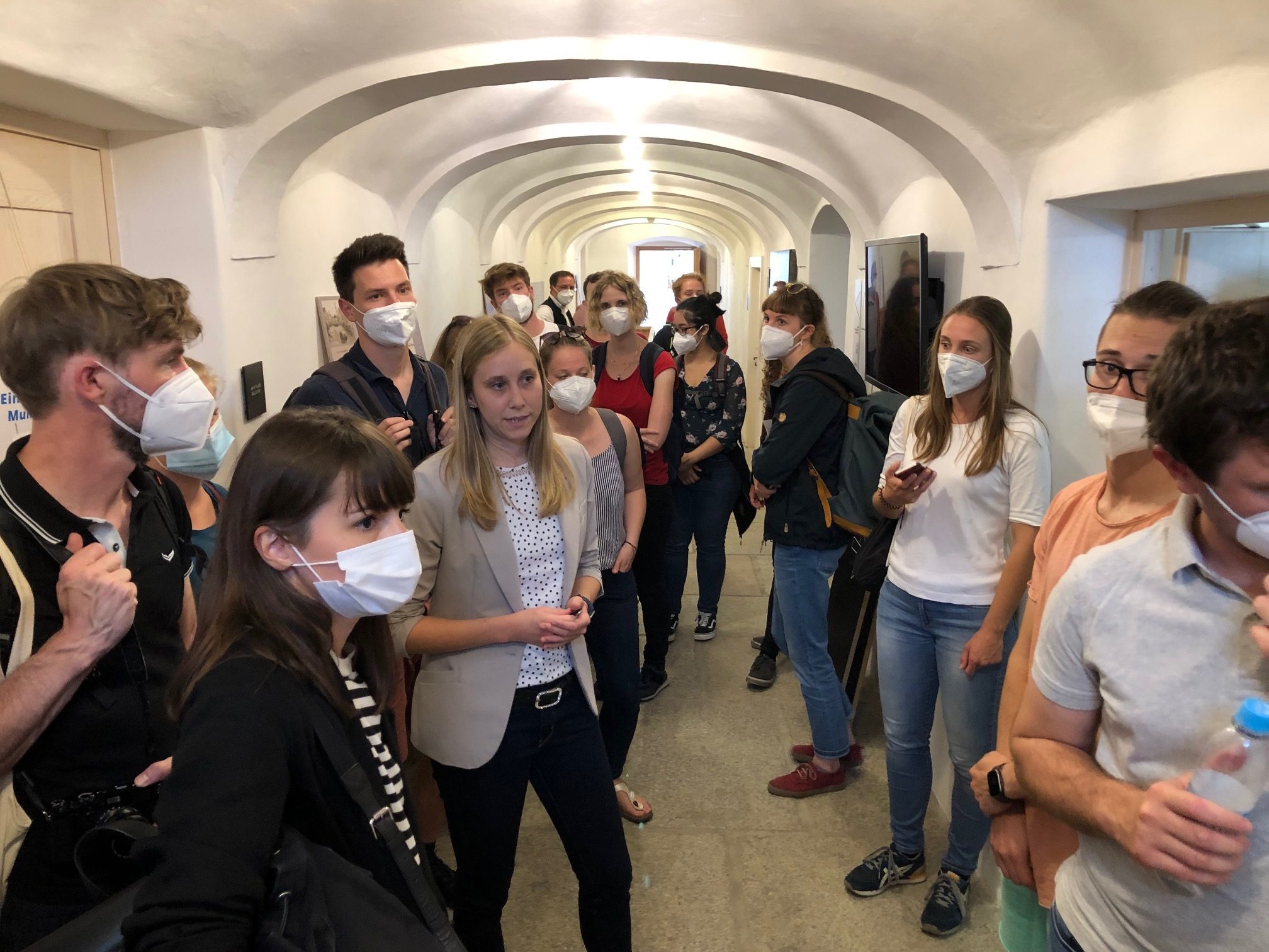 Corina Molz und Werner Weny führten die Studierenden durch die Räume und gingen dabei insbesondere auf das Nutzungskonzept und die Baukultur ein. „Ziel war es, Baukultur erlebbar zu machen und die Menschen dafür zu sensibilisieren. Nun ist die Bauhütte auch in einer 3D-Tour virtuell begehbar. Damit wird dem Digitalisierungstrend begegnet und auch die jüngere Bevölkerung angesprochen“, so Molz.