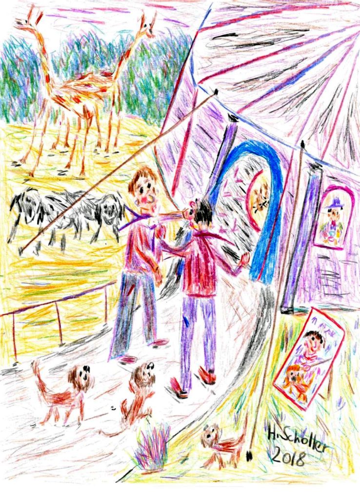 Und dann rief Ingrid Scholler an, die zusammen mit ihrem Mann Heinz seit Jahren Teilnehmerin bei den Fahrten ist. Die beiden hatten in der Zeitung von der Malaktion gelesen. Sie erklärte Rosmarie Krenn, dass ihr Mann gerne zeichnet und fragte, ob sie denn welche von seinen Bildern brauchen könne.