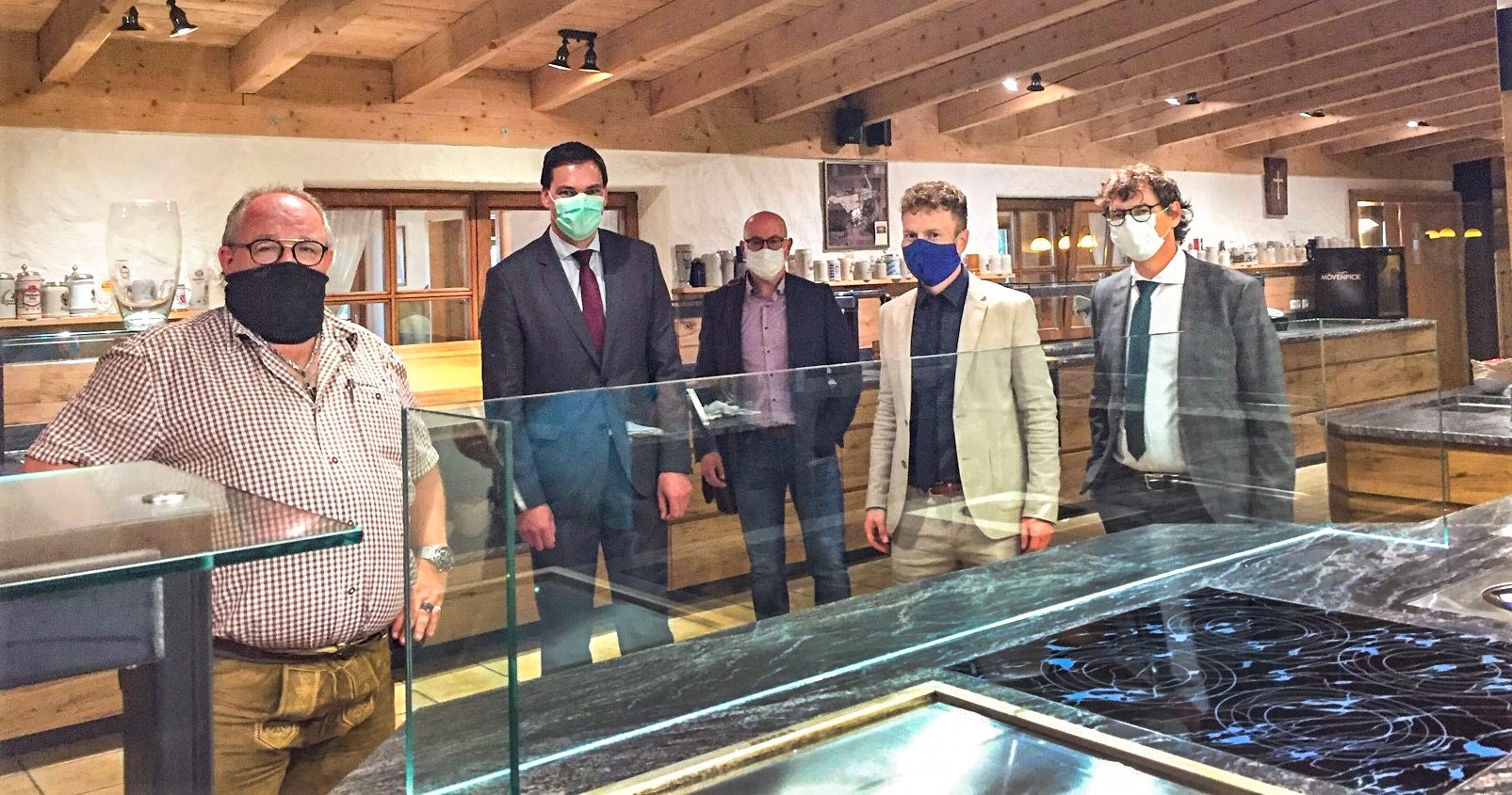 Gruber hatte Sitter zusammen mit Regionalmanager Stefan Schuster, Wirtschaftsreferent Johannes Gastinger und Tourismusreferent Bernhard Hain besucht um über die aktuelle Situation der Gastronomie und Hotellerie im Landkreis zu sprechen. Der Landrat betonte, welch wichtigen Wirtschaftsfaktor Tourismus, Gastronomie und Hotellerie mit ihren vielen Beschäftigten im Landkreis darstellen.