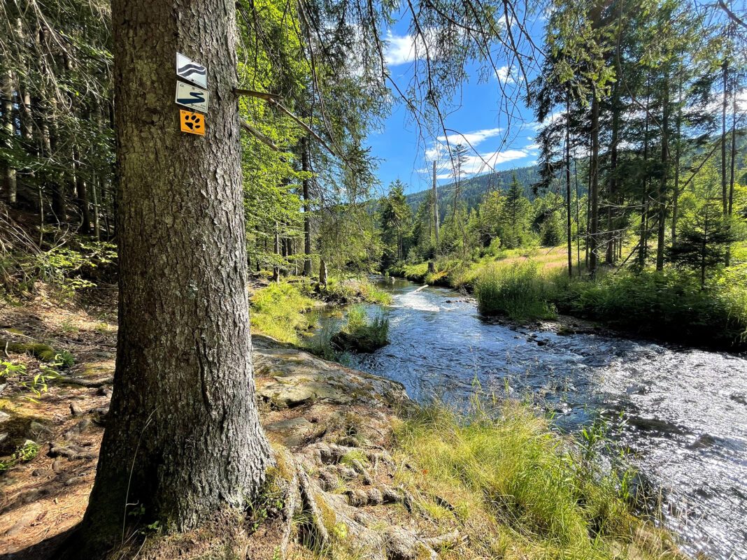 Ludwigsthal. Waldführerin Gabi Kreuzer lädt alle Interessierten auf eine lange, aber einfache Wanderung am Sonntag, 24. Juli 2022 ein. Vom Nationalparkzentrum Falkenstein in Ludwigsthal wird erst zum Flusswanderweg gewandert. Diesem folgt die Gruppe dann von Regenhütte bis Seebachschleife. Der Pfad verläuft hier entlang des Großen Regens durch eine reizvolle Auenlandschaft unmittelbar neben dem Flussbett und führt auch an einigen historischen Glashüttenstandorten vorbei. Von Seebachschleife aus geht’s dann zum Schwellhäusl, einer ehemaligen Triftanlage. Vorbei am Hans-Watzlik-Hain und der Mittelsteighütte gelangen die Teilnehmer zuletzt auf dem Luchspfad zurück zum Ausgangspukt.