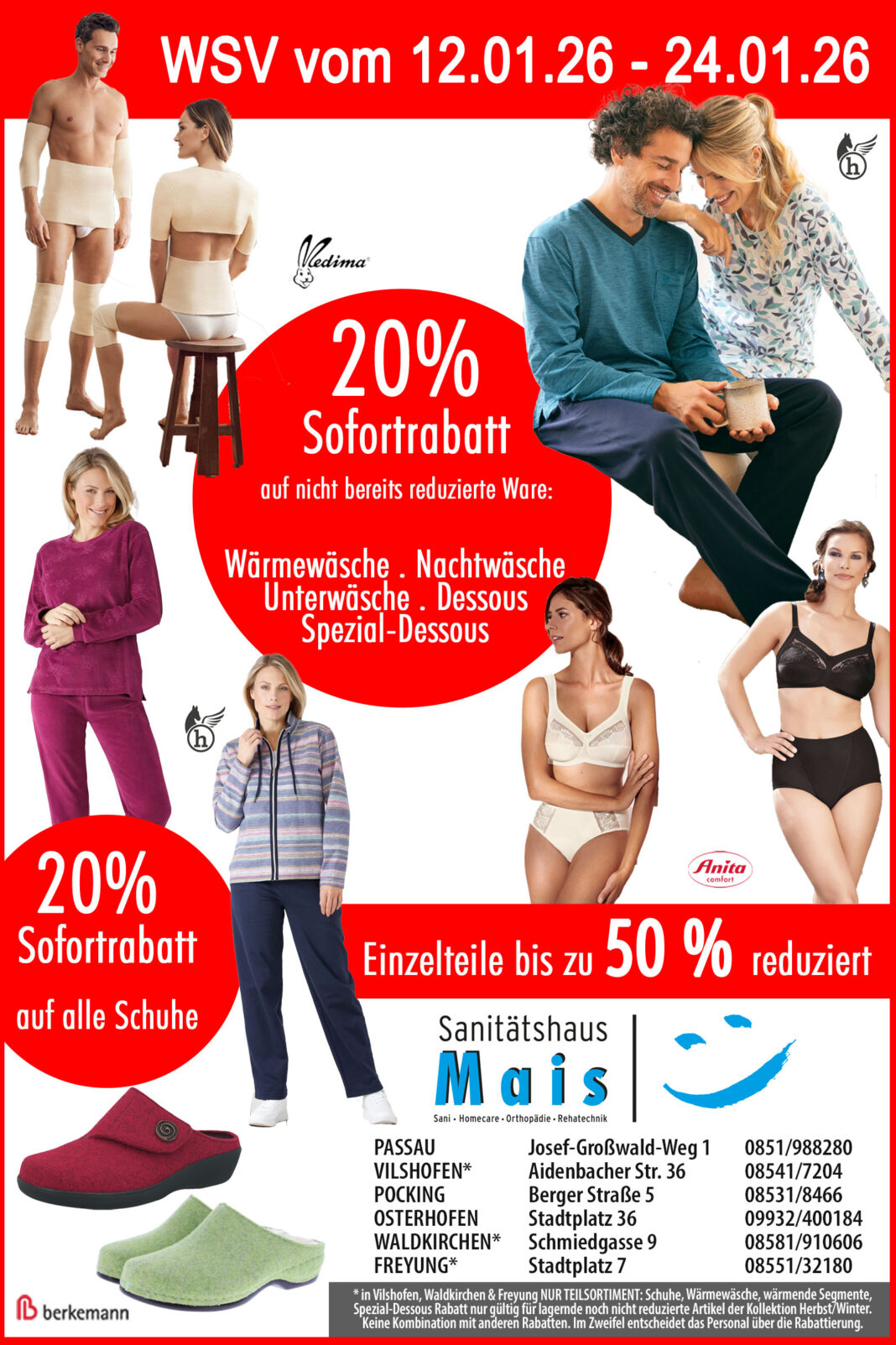DahoamGesundheit WSV beim Sanitätshaus Mais By Karl-Heinz Schoppa 14. Januar 2026 0 120 Teilen FacebookEmailDruckenCopy URL Lesestoff Gemeinsamer Jahresauftakt im neuen Rahmen 14. Januar 2026 Tourismuszahlen Stadt Passau 2025: 13. Januar 2026 Optimismus als Antwort auf unsichere Zeiten 12. Januar 2026 Neujahrsempfang der Passauer CSU 12. Januar 2026 vom 12.01.2026 – 24.01.206 TagsSanitätshaus MaisWinterschlussverkauf 2026 Teilen FacebookEmailDruckenCopy URL Vorheriger ArtikelGemeinsamer Jahresauftakt im neuen Rahmen - Werbung- More articles „A super Sach‘!“ – Herzogsreut feiert 130 Jahre Skisport mit Herz und Humor 7. Januar 2026 Richtfest des Kreiskrankenhauses Freyung – Ein starkes Zeichen für die Region 21. Dezember 2025 Zauberhafter Winterfund 16. Dezember 2025 Kommentieren Sie den Artikel Antwort abbrechen Kommentar: Bitte geben Sie Ihren Kommentar ein! Name:* Bitte geben Sie hier Ihren Namen ein E-Mail:* Sie haben eine falsche E-Mail-Adresse eingegeben! Bitte geben Sie hier Ihre E-Mail-Adresse ein Website: Speichern Sie meinen Namen, meine E-Mail-Adresse und meine Website für den nächsten Kommentar in diesem Browser. Benachrichtige mich über nachfolgende Kommentare via E-Mail. Benachrichtige mich über neue Beiträge via E-Mail. Δ - Anzeige - Letzte Beiträge Gemeinsamer Jahresauftakt im neuen Rahmen 14. Januar 2026 Tourismuszahlen Stadt Passau 2025: 13. Januar 2026 Optimismus als Antwort auf unsichere Zeiten 12. Januar 2026 Neujahrsempfang der Passauer CSU 12. Januar 2026 1. Hutthurmer Raunacht 12. Januar 2026