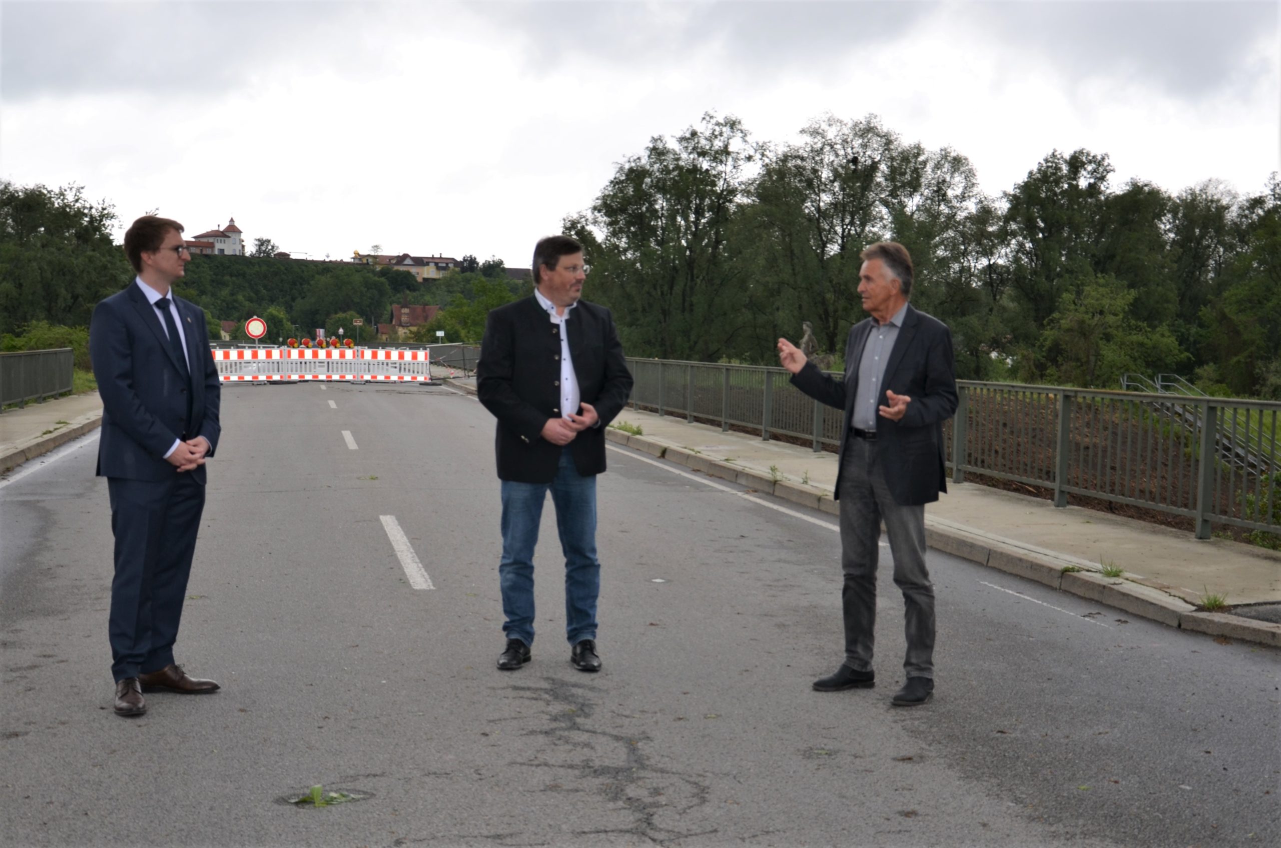 (v.r.) MdL Walter Taubeneder tauscht sich mit Bürgermeister Anton Freudenstein (Kirchham) und Bürgermeister Tobias Kurz (Bad Füssing) zur Problematik an der Grenze zum Oberösterreichischen Obernberg bei Kirchham und Bad Füssing aus (Foto: Stefanie Starke)