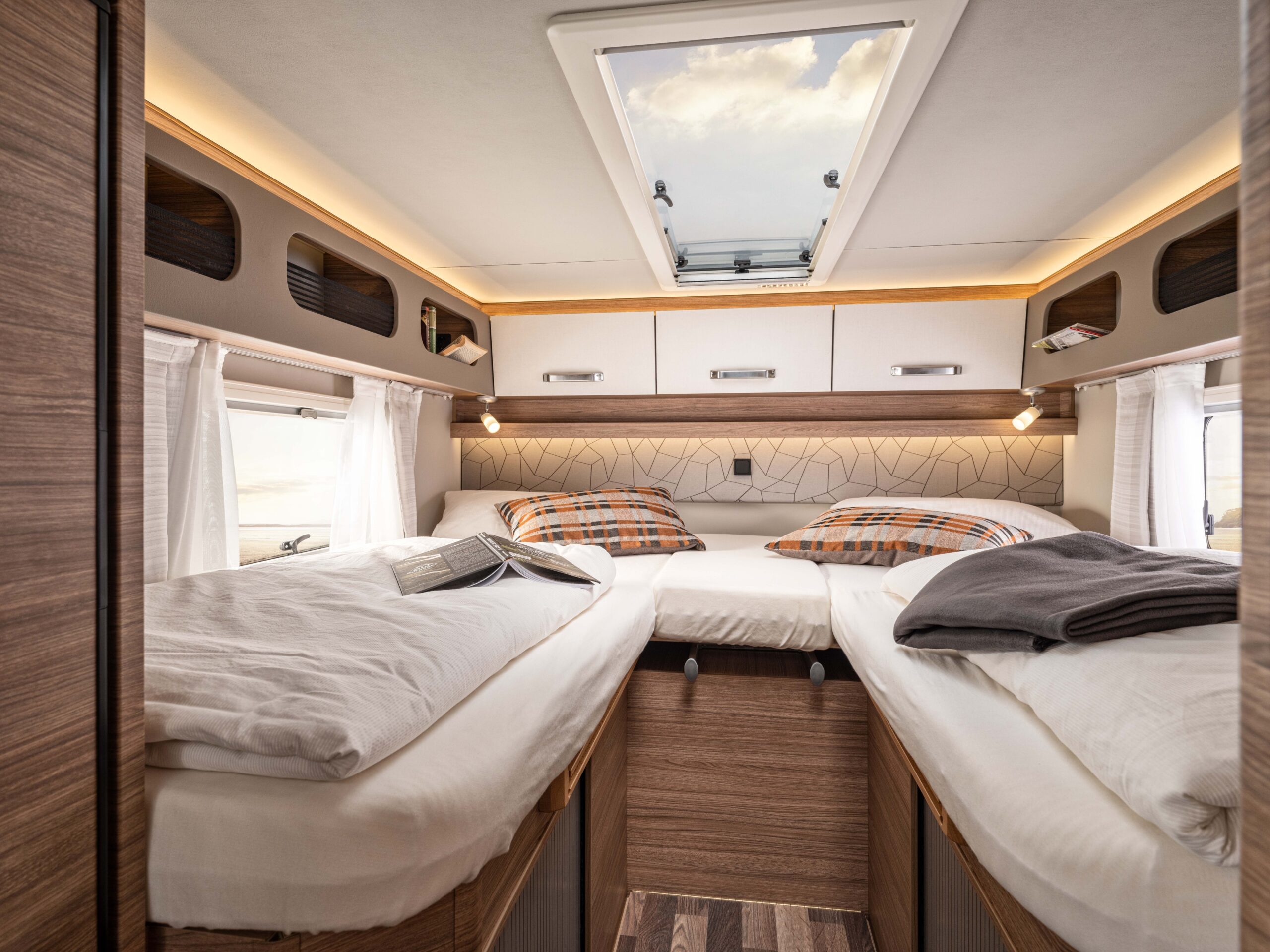 VW Nutzfahrzeuge ist ohnehin zum bevorzugten Partner von Knaus-Tabbert avanciert. Vor kurzem wurde eine strategische Zusammenarbeit bekanntgegeben. Der Van TI, ebenfalls ein Teilintegrierter für rund 80.000 Euro, rollt künftig auf dem Fahrgestell des Crafter, der zumindest teilweise den baugleichen MAN TGE im Knaus-Programm ablöst. Zweifarblackierung, Luftfederung und die allfälligen Assistenz-Sicherheitssysteme sind bei ihm zu haben. Gerüchteweise will die Marke den Crafter auch als ausgebauten Kastenwagen entwickeln, der sich dann in die Boxlife-Familie einreiht, die bislang ausschließlich auf Fiat basiert.