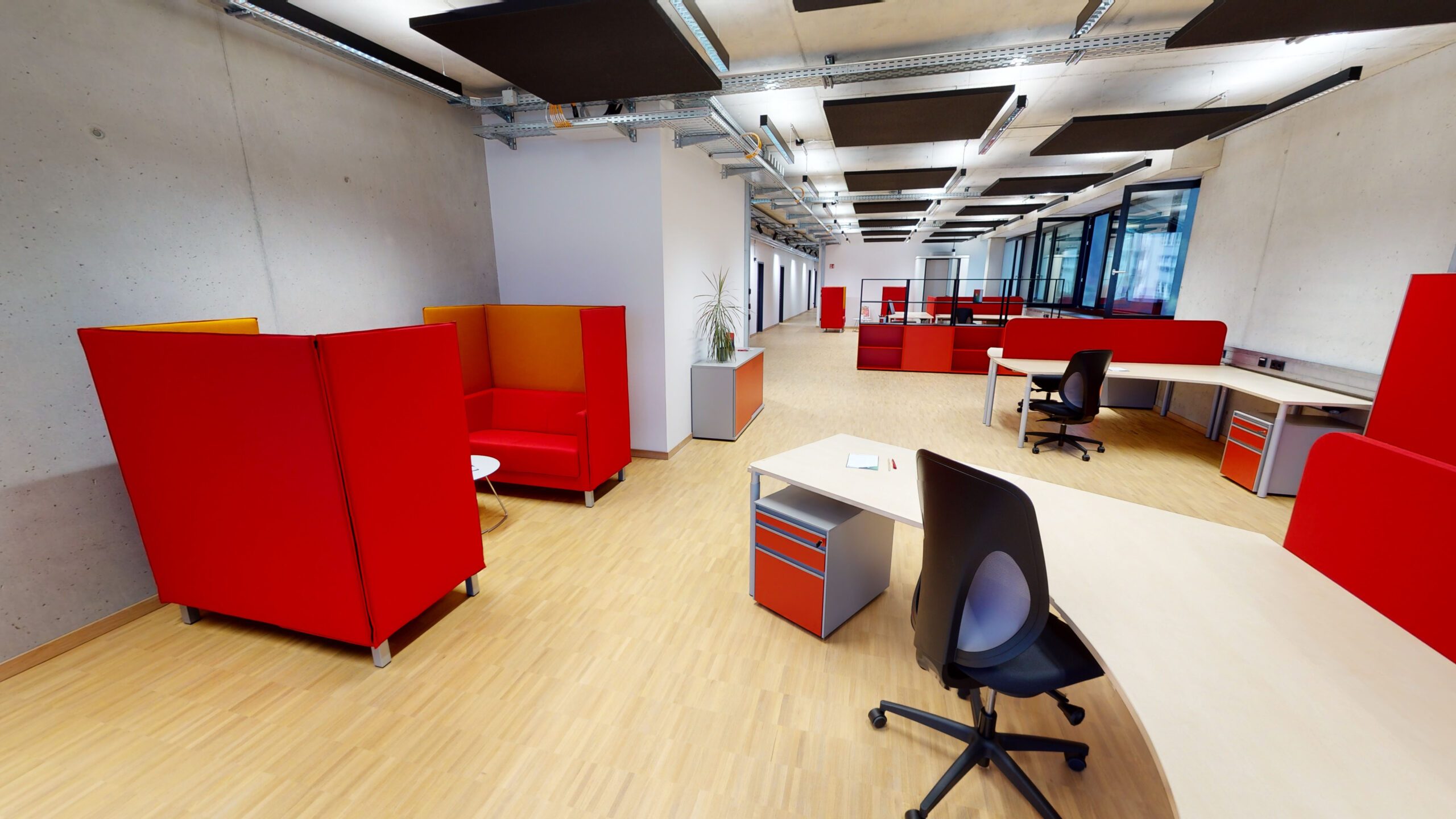 Der eigentliche Wortsinn bedeutet „gemeinsam Arbeiten“, und so sind meist mehrere CoWorking Arbeitsplätze in größeren Räumen untergebracht. Jeder Schreibtisch und die zugehörige Infrastruktur bieten dabei optimale Arbeitsbedingungen. Für Telefonate stehen in der Regel Rückzugsbereiche, wie Telefonzellen oder schallisolierte Sitzgelegenheiten zur Verfügung. So kann jede:r CoWorker:in ungestört und effizient arbeiten.