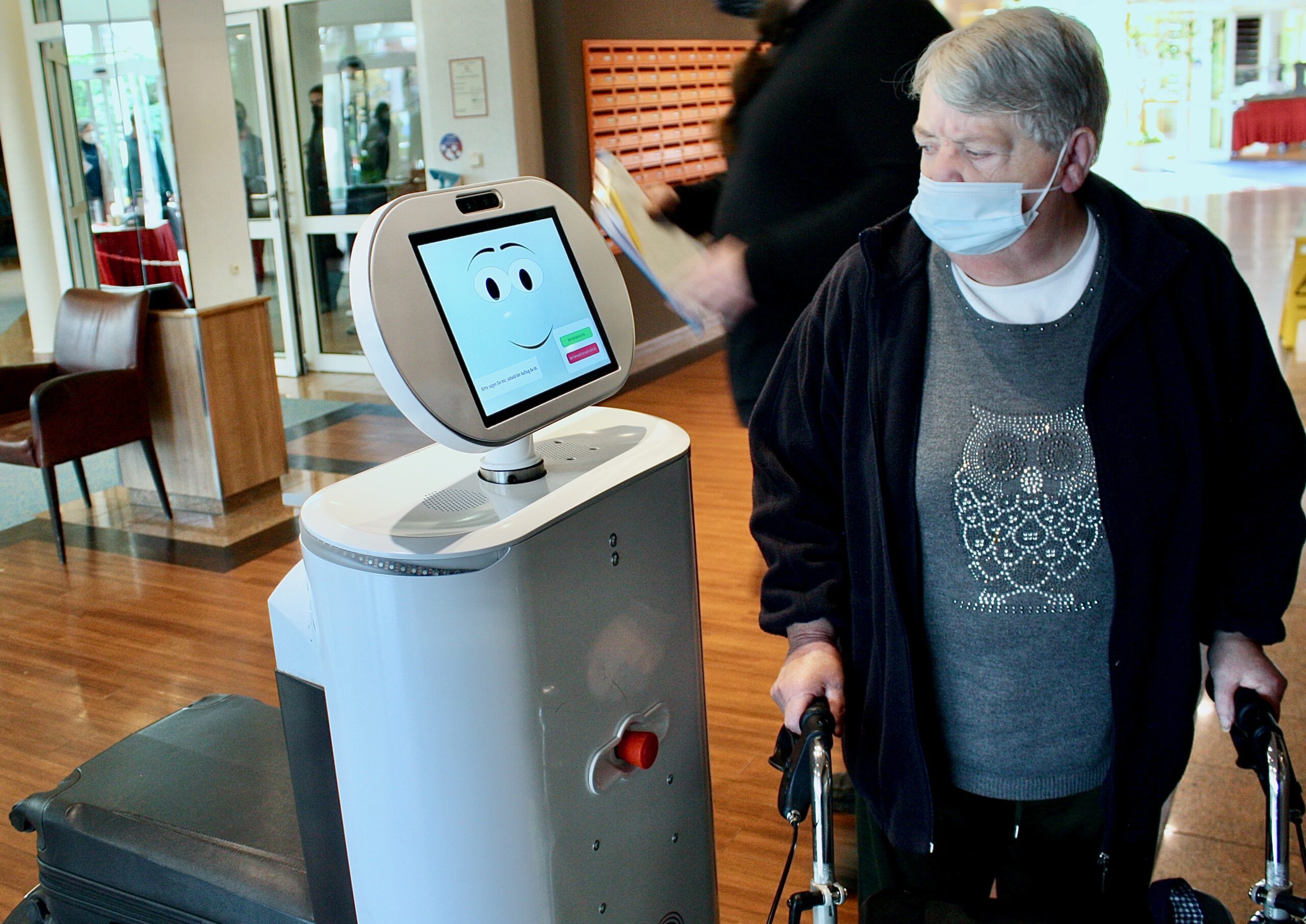 Ein speziell entwickelter Transport-Roboter begleitete als intelligenter „Kofferträger“ die Gäste nach dem Check-In ins Zimmer. Ein zweiter Roboter, ein computergesteuerter, autonomer Rollator, holte Patienten ab und begleitete sie zu den Therapien und Sprechstunden innerhalb des Hauses. Zudem assistierte ein Roboter-Arm bei pflegerischen Tätigkeiten. Das Ziel des Projekts: ein vertrauensvolles Miteinander von Roboter und Mensch zu testen, um zukünftig einen Roboter-Einsatz in Pflegeeinrichtungen etablieren zu können. „Kommunikation und Interaktion sind dafür die zentralen Elemente“, sagt Karsten Bohlmann.