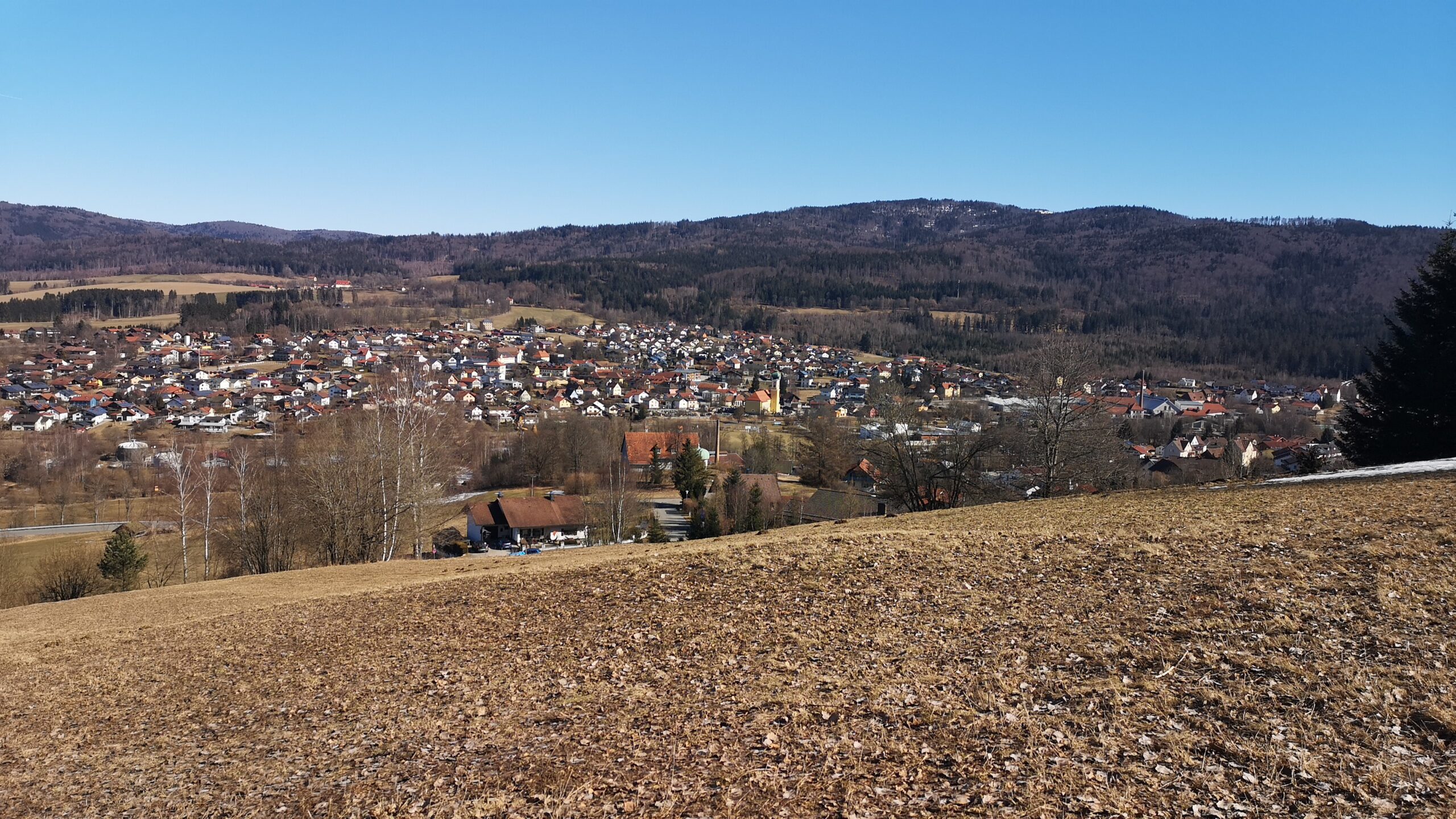 Aber zurück zur Wanderung: Mit leichtem Anstieg führt der Wanderweg nun weiter in Richtung Kneippbecken und von dort aus durch das „Kollerbergerl“ bis kurz vor Flanitzmühle. Dort angekommen, muss ein steilerer Aufstieg durch einen Hohlweg gemeistert werden. Aufmerksame Beobachter*innen können hier diverse Baumpilze und Vogelarten wie den Baumläufer entdecken. Die Vegetation der Umgebung unterscheidet sich durch die Nutzung des Menschen stark von der Pflanzenwelt am Anfang der Wanderung. Welche verschiedenen Nutzungsintensitäten kann man erkennen? Ziel der Tour ist die kleine Kapelle des Künstlers Erwin Eisch auf der Zell. Hier erwartet uns ein Rastplatz von dem aus ganz Frauenau überblickt werden kann. Höchste Zeit für eine kleine Pause mit Tee und Brotzeit, bei der der Ausblick ausgiebig genossen wird. Ausgeruht und voller neuer Eindrücke folgen wir nun auf der Teerstraße dem Rundwanderweg Nummer 3. Dieser bringt uns an Feldern und Wiesen vorbei zurück nach Frauenau, das man bereits in der Ferne sehen kann. Für die Wanderung sollte man mit Pause etwa 2 Stunden einplanen.