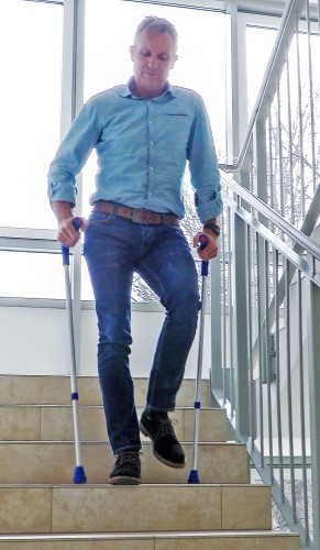 Nach zwei Stunden mit neuem Hüftgelenk wieder auf den Beinen
