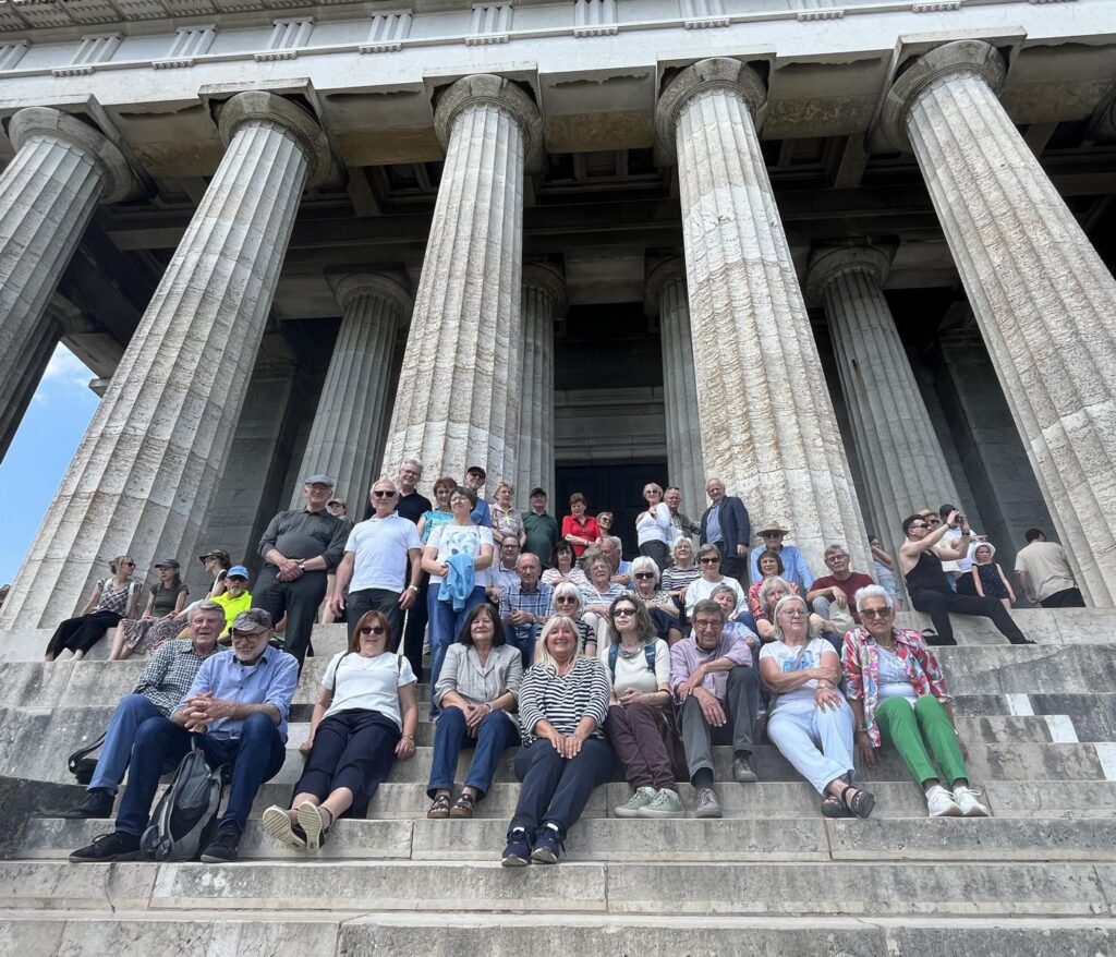 Auf den Treppen unterhalb der mächtigen Säulen der Walhalla genossen die TeilnehmerInnen des Kulturausflugs der Waldvereinssektion Grafenau die Aussicht auf die Donau und das weite Land. (Foto: privat)
