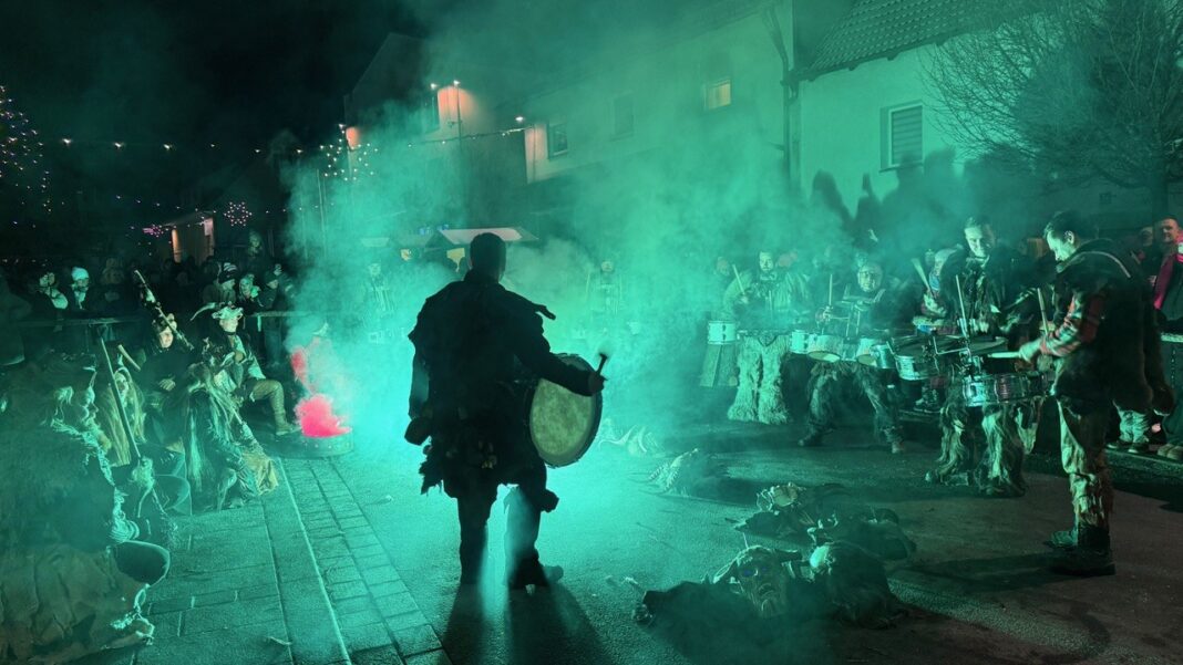 In der froststarren Nacht, als das Jahr an seiner geheimen Schwelle stand und der Mond sein kaltes Licht über die Dächer legte, löste sich der Hutthurmer Marktplatz vom 5. auf den 6. Januar zur 1. Hutthurmer Raunacht aus dem Gewohnten. Was sonst Ort des Alltags ist, wurde zum Schauplatz einer fremden, zeitentrückten Wirklichkeit. Zum ersten Mal rief die Gemeinde ein Raunachtsereignis ins Leben, das Menschen aus unterschiedlichsten Richtungen zusammenführte. Sie kamen, um sich von düsteren Gestalten, alten Erzählungen und längst vergessenen Ritualen in den Bann ziehen zu lassen und für einige Stunden Teil einer anderen Welt zu werden. (Fotos: Wiedenbein)