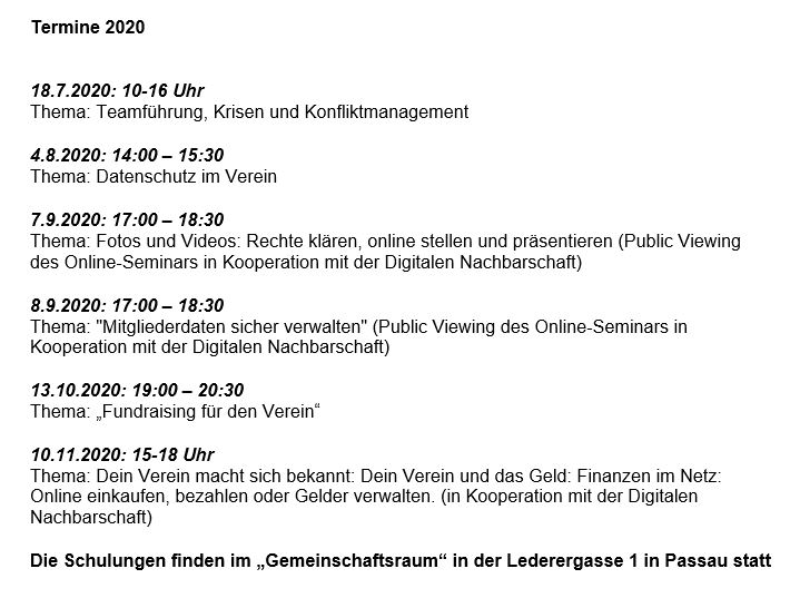 Die Schulungen finden im „Gemeinschaftsraum“ in der Lederergasse 1 in Passau statt