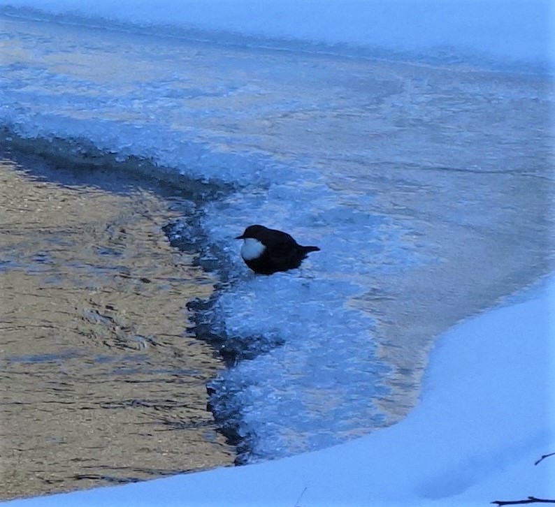 Der Winter ist auch im Ilztal wieder fest angekommen. Tief schwarz fließt die Ilz, eingesäumt von Eis und Schnee an den Ufern. Anhand von Spuren im Schnee kann man jetzt gut erkennen, wer alles trotz Kälte und Eis unterwegs ist. An den eisfreien Stellen kann man die Wasseramsel auf Nahrungssuche beobachten. Es ist immer nur ein kurzes ausruhen, bevor sie sich wieder zum nächsten Tauchgang auf Nahrungssuche am Grunde der Ilz aufmacht.
