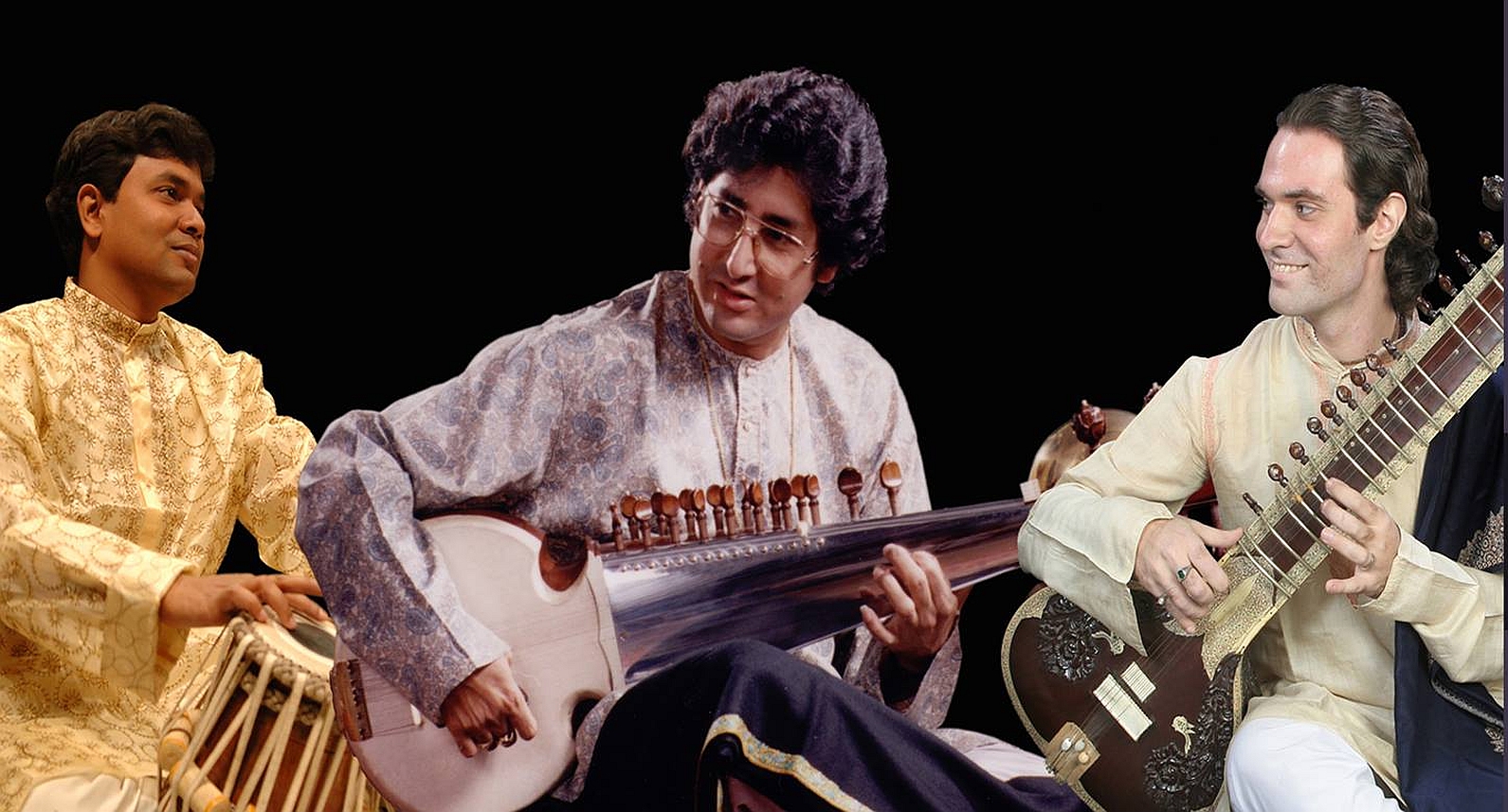 (Bild: Am 21. Mai 2017 stellen Partho Sarothy (Sarod), Alokesh Chandra (Sitar) und Ashis Paul (Tabla) klassische indische Musik in der Yogaschule Passau vor. Das Konzert ist auch eine Hommage an ihren berühmten Lehrer Ravi Shankar – Bildquelle: Denk)