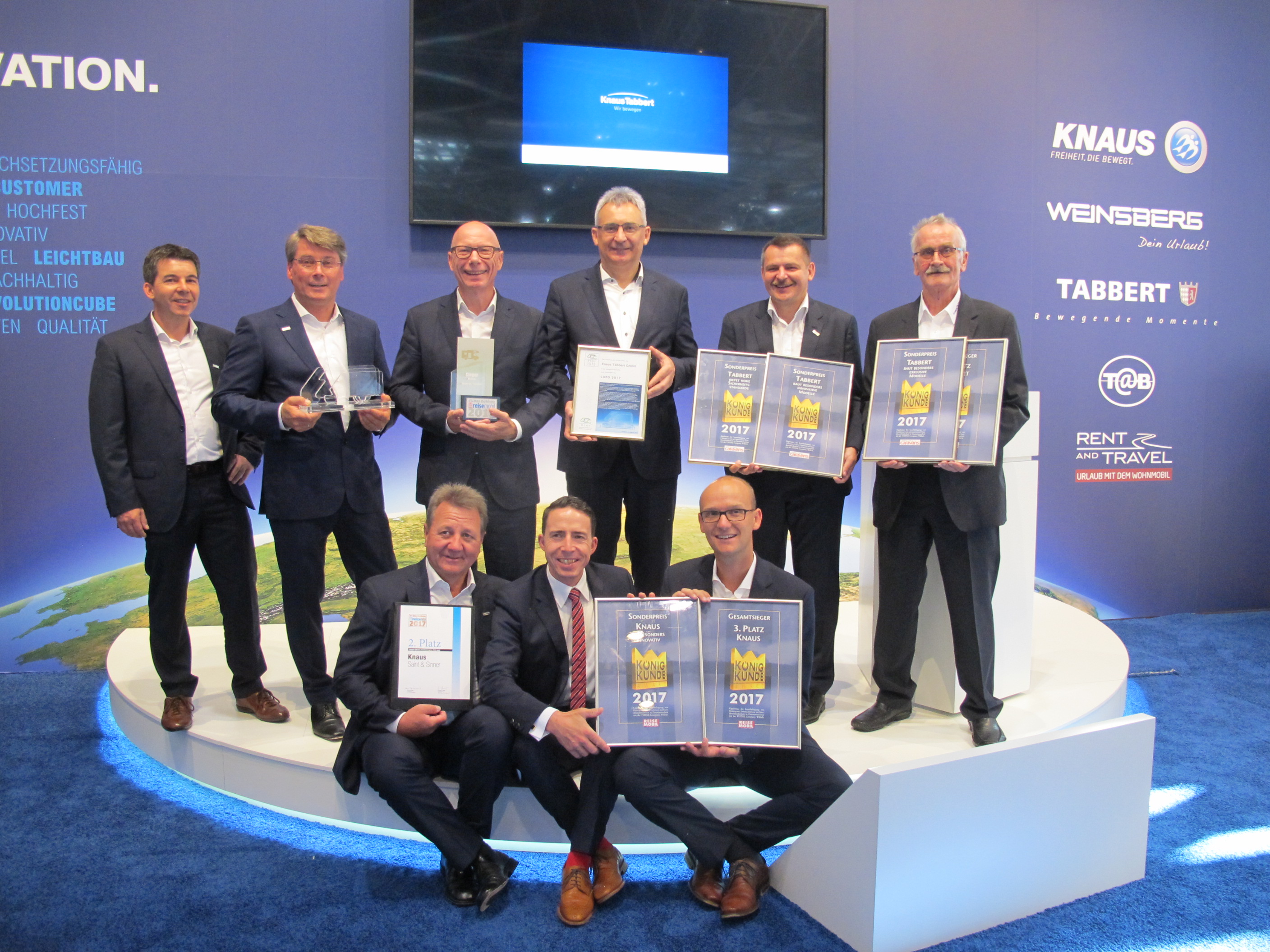 Düsseldorf/Jandelsbrunn (August 2017). „König Kunde“ hat gewählt: Die Leser der Fachmagazine „Reisemobil International“ und „Camping, Cars & Caravans“ küren die Marken der Knaus Tabbert GmbH wieder zu Gewinnern beim „König Kunde Award 2017“.